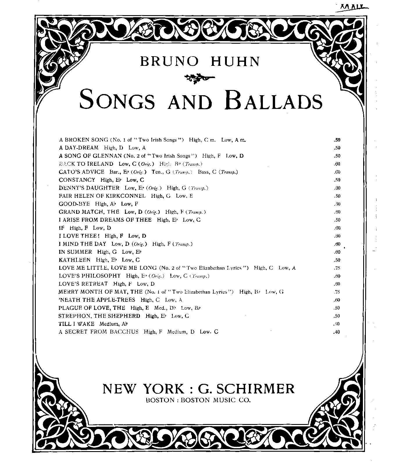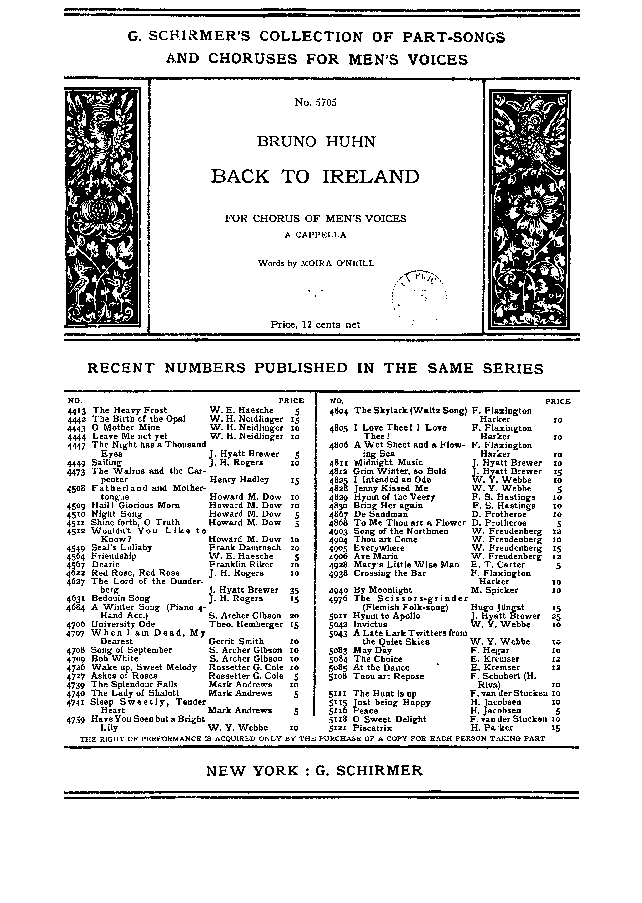 Publisher. Info. New York: G. Schirmer, 1912. Plate 23706.