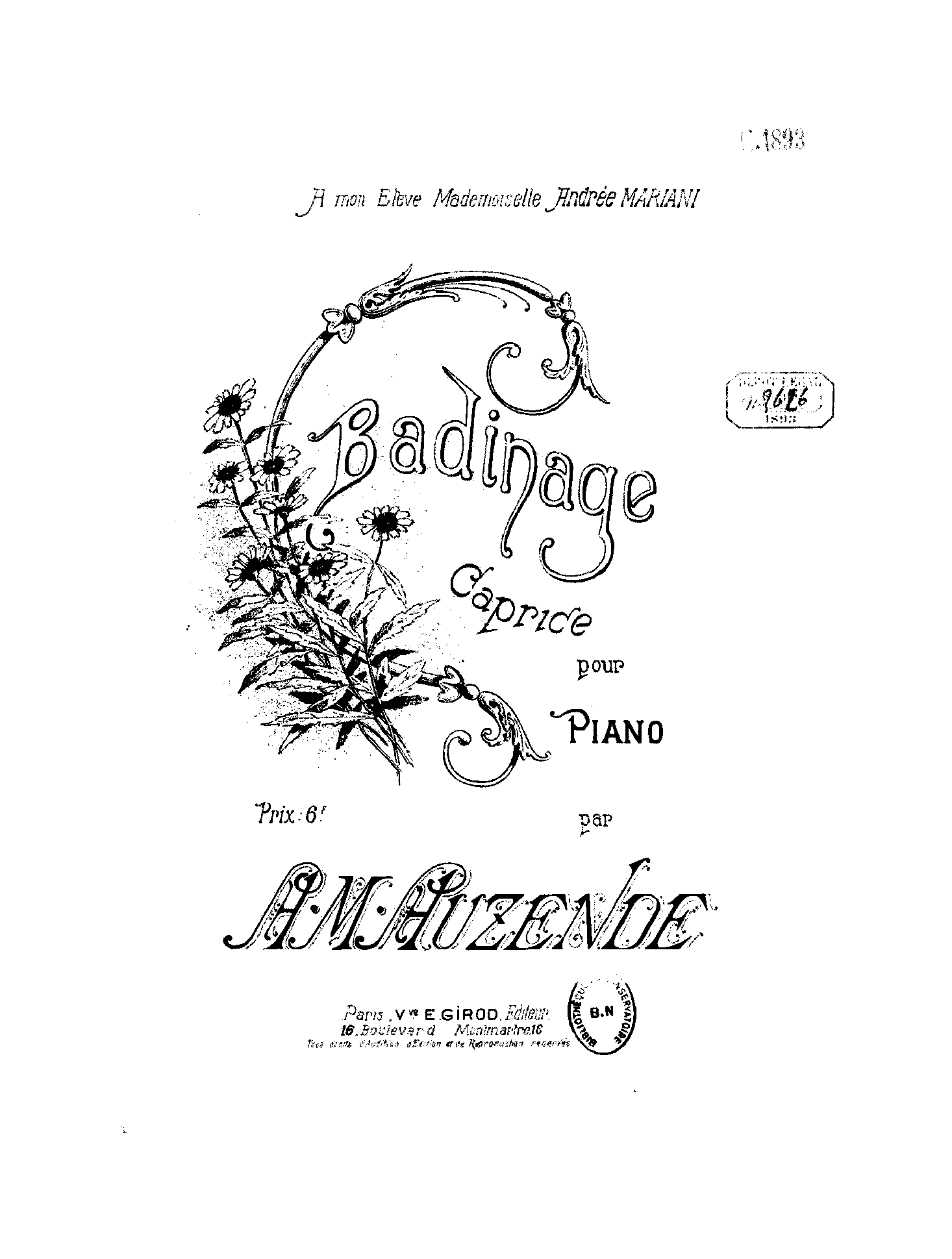 | Dedication | à mon élève Mademoiselle Andrée Mariani |