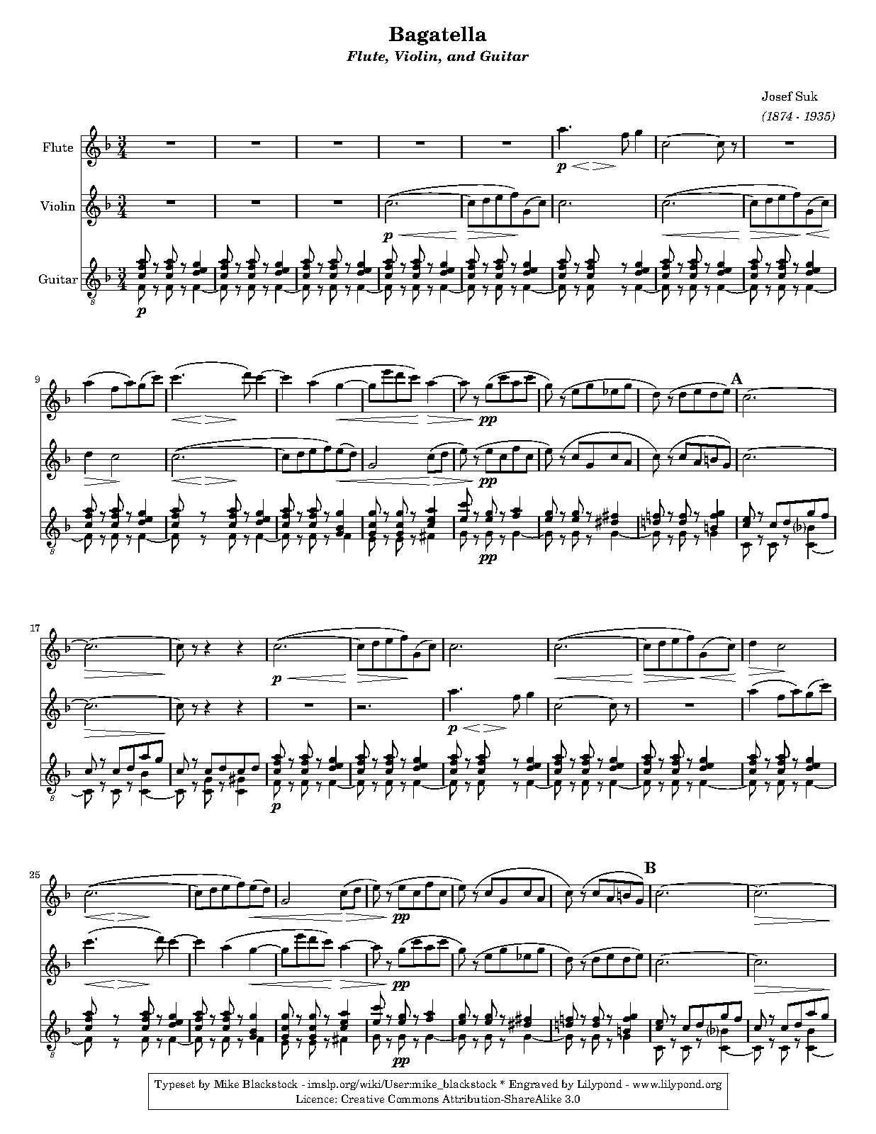 | Genre Categories | Bagatelles; For flute, violin, piano; Scores featuring the flute; |