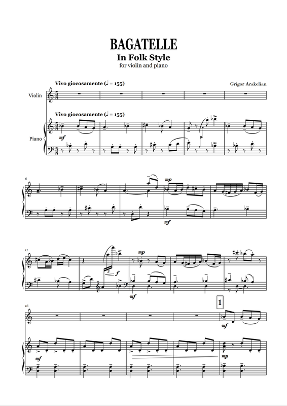 | Genre Categories | Bagatelles; For violin, piano; Scores featuring the violin; |