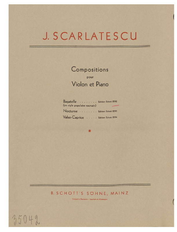 | Work Title | Bagatelle en style populaire roumain pour violon et pianoforte |