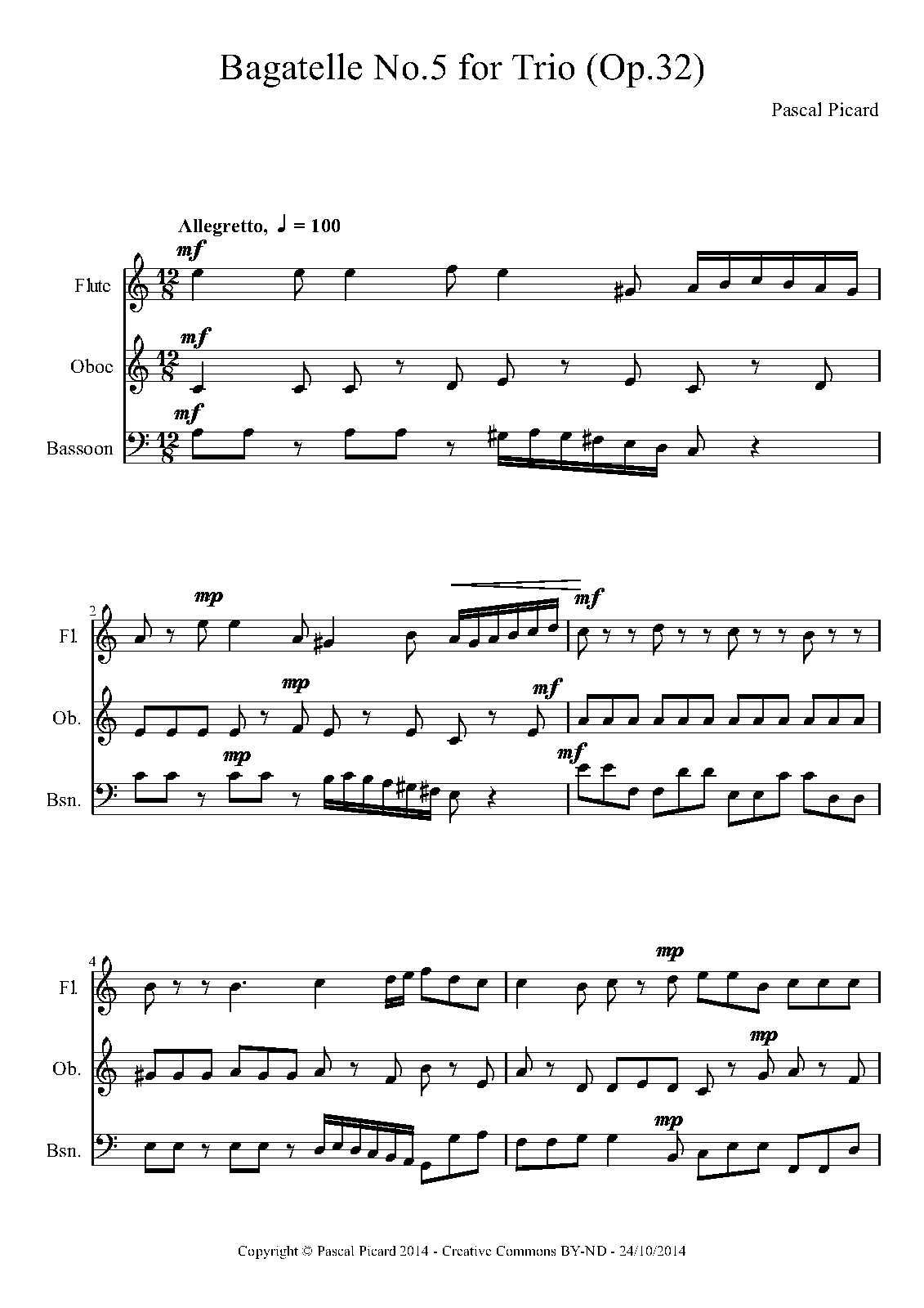 | Genre Categories | Bagatelles; For flute, oboe, bassoon; Scores featuring the flute; |