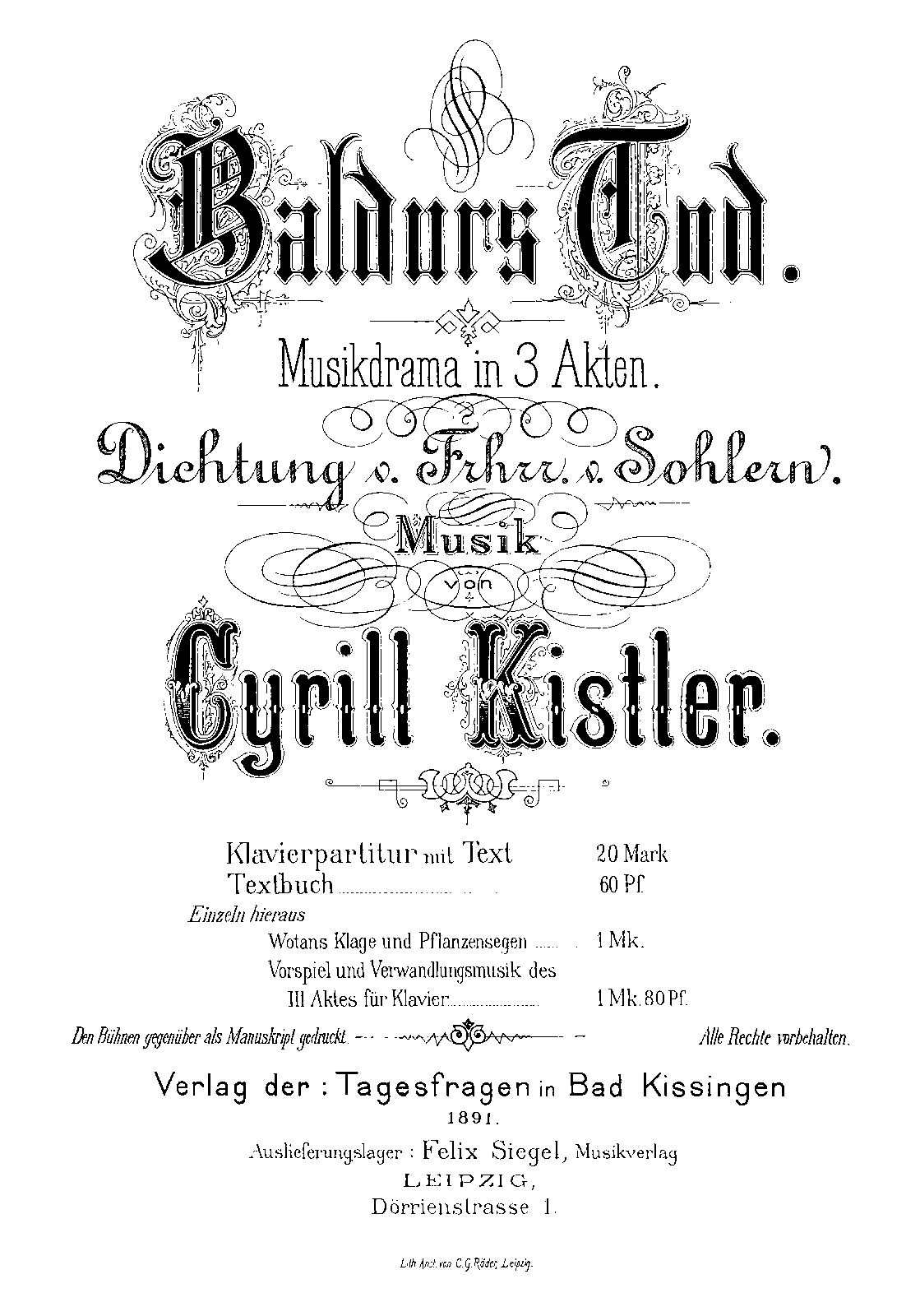| First Publication | 1891 – Bad Kissingen: Verlag der Musikalischen Tagesfragen |
