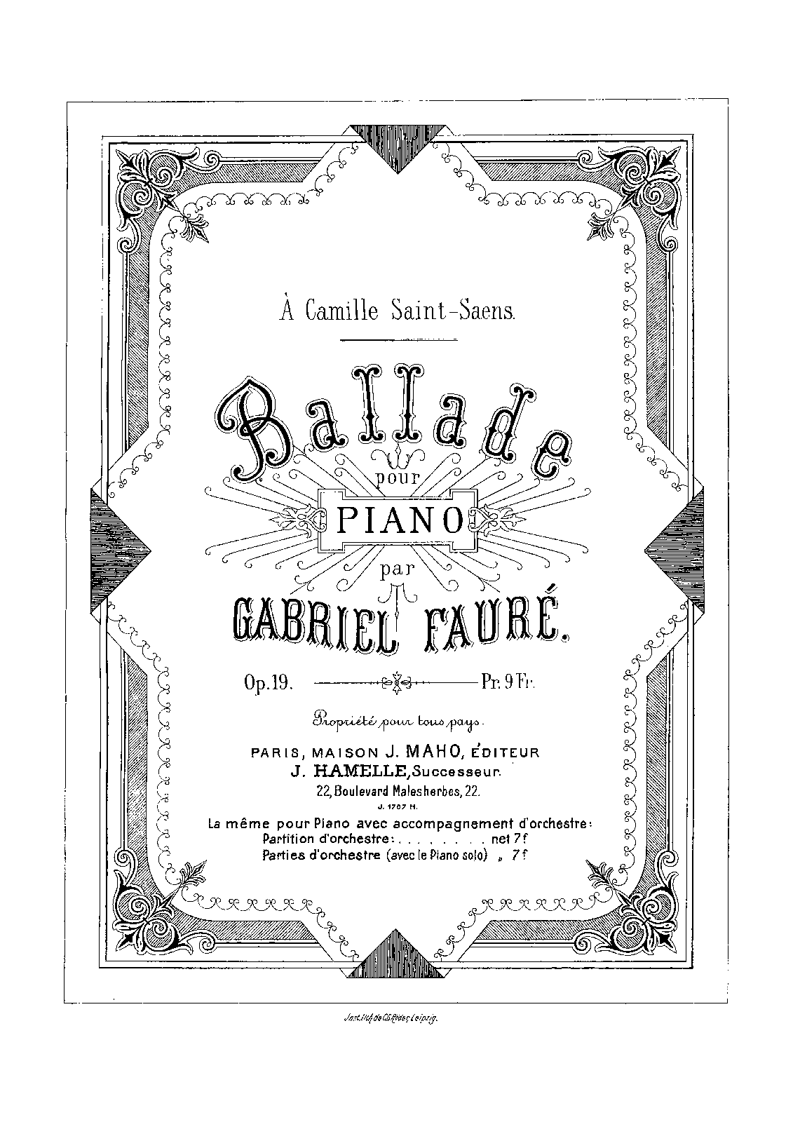 | Name Translations | Ballade pour piano et orchestre; Ballade Fis-Dur für Klavier und Orchester; Ballade Op. 19; ピアノと管弦楽のためのバラード |