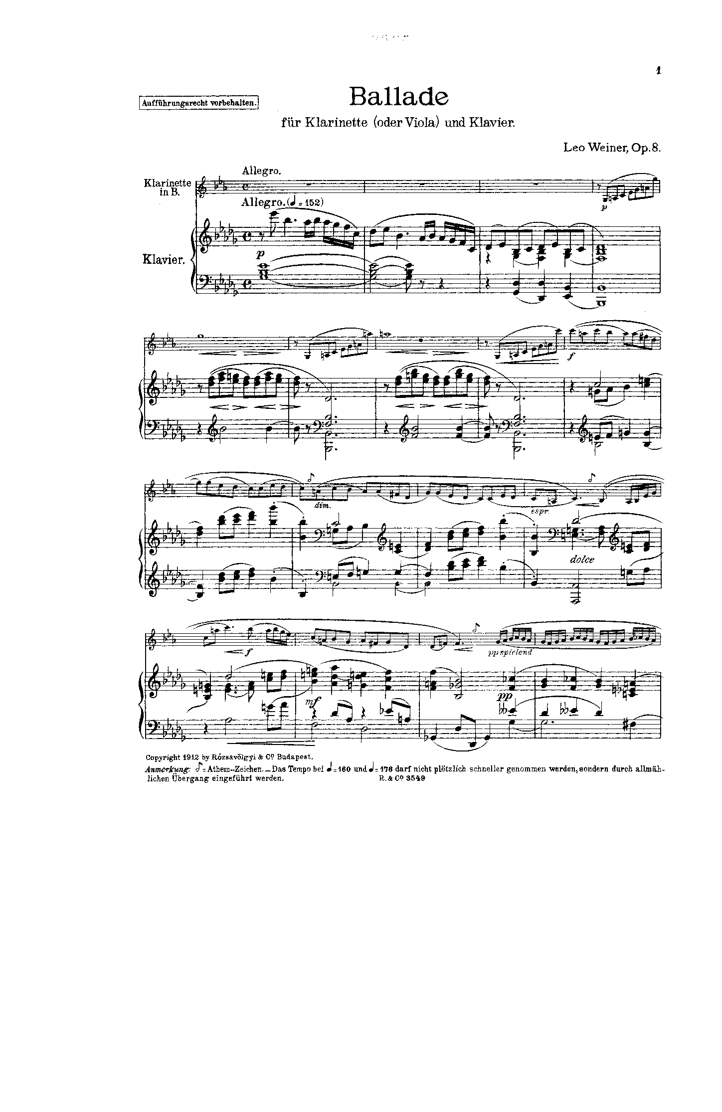 | Genre Categories | Ballades; For clarinet, piano; Scores featuring the clarinet; |