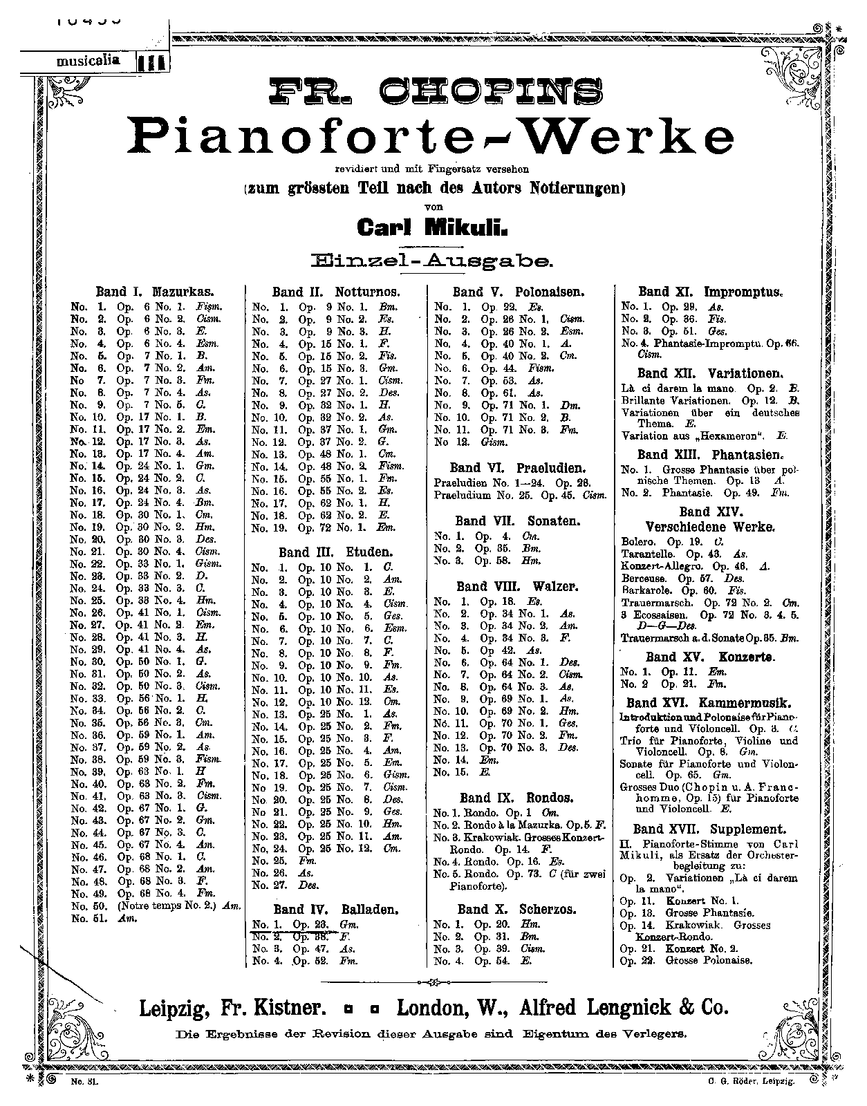 Publisher. Info. Friedrich Chopin's Werke. Band I