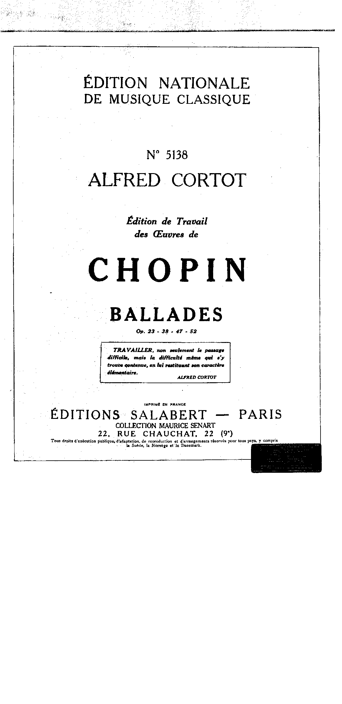 Publisher Info. Alfred Cortot, 1929.