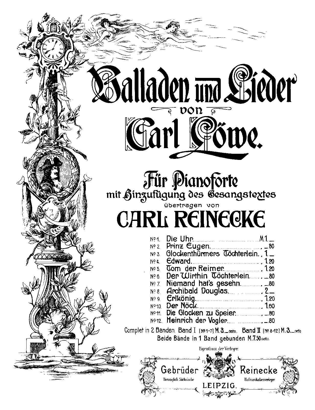 | Alternative. Title | Balladen und Lieder von Carl Löwe für Pianoforte mit hinzufügung des Gesangstextes übertragen von Carl Reinecke |