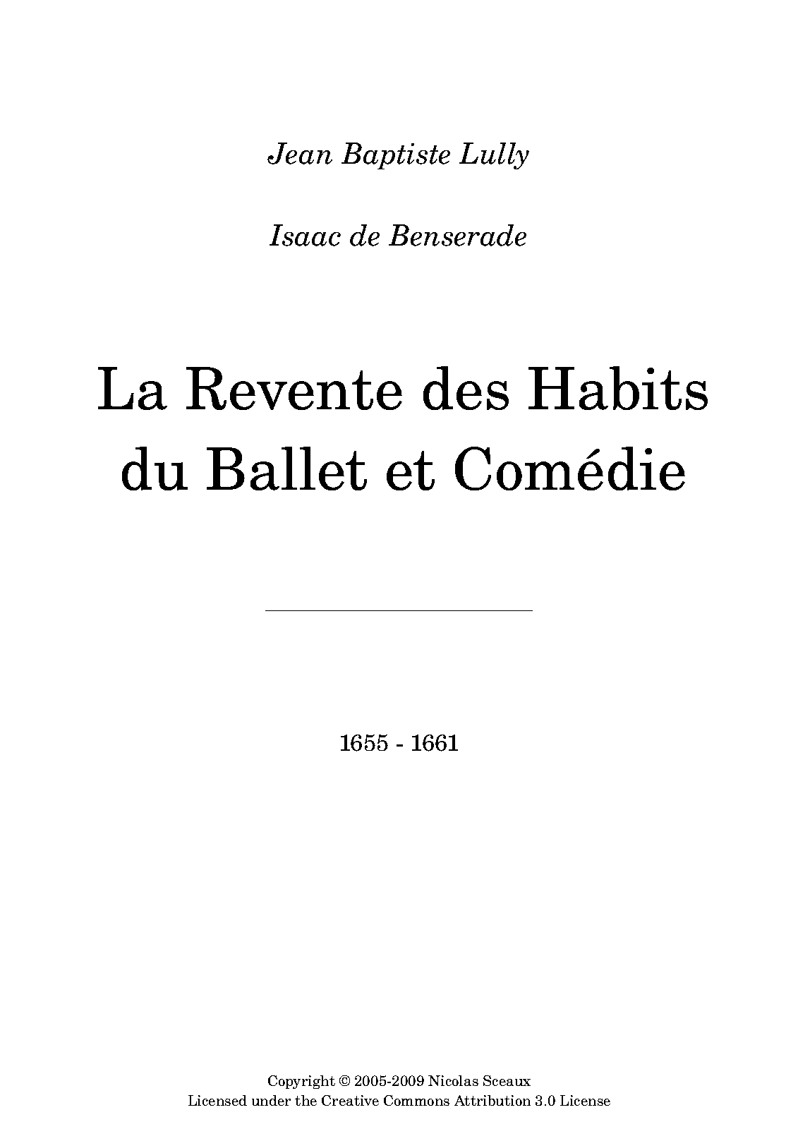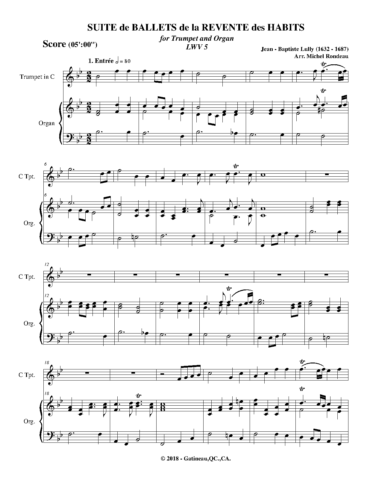 | Genre Categories | Ballets; Theatrical Works; For treble, 2 alto, tenor, bass instruments; |