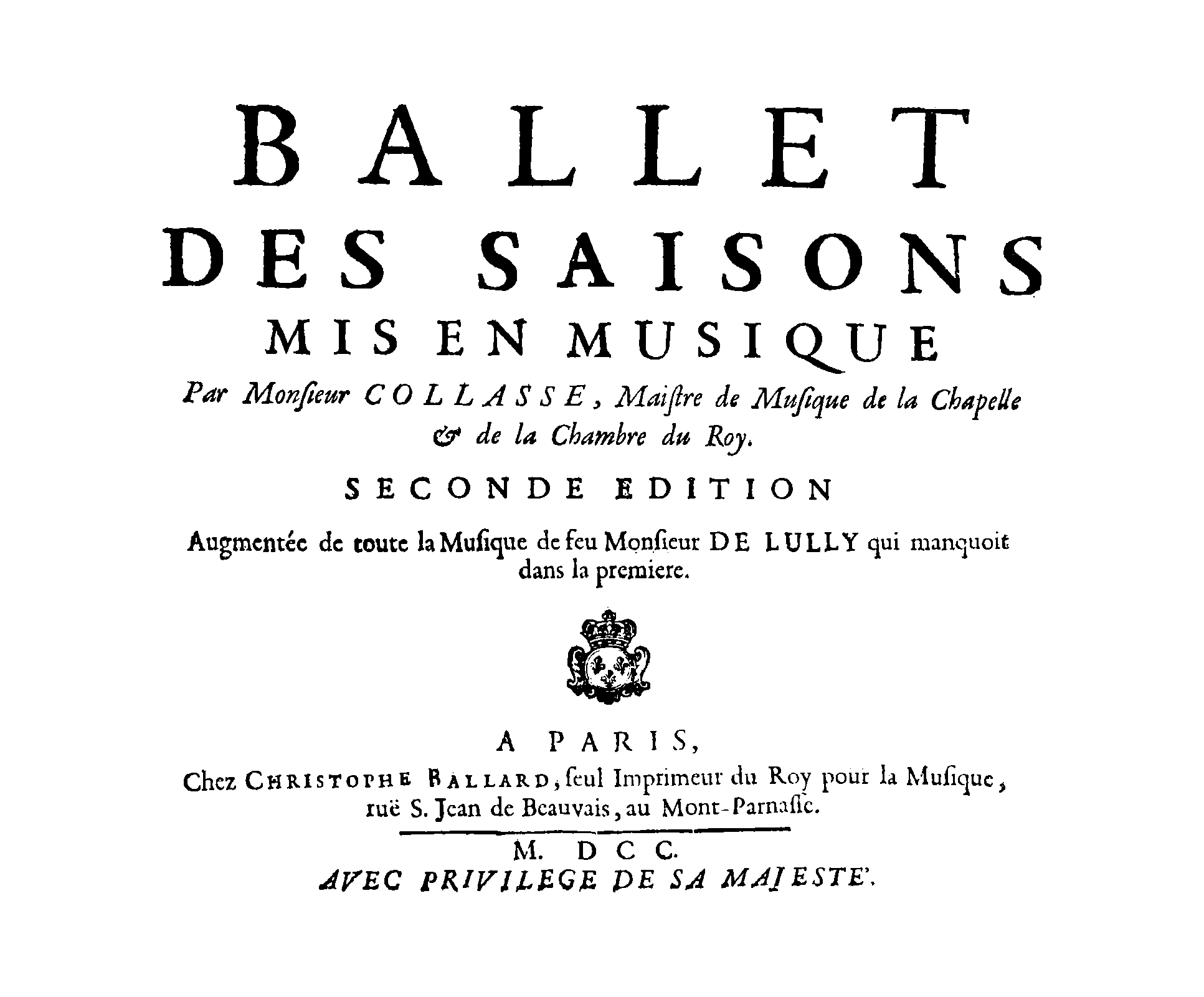 | Work Title | Ballet des saisons |