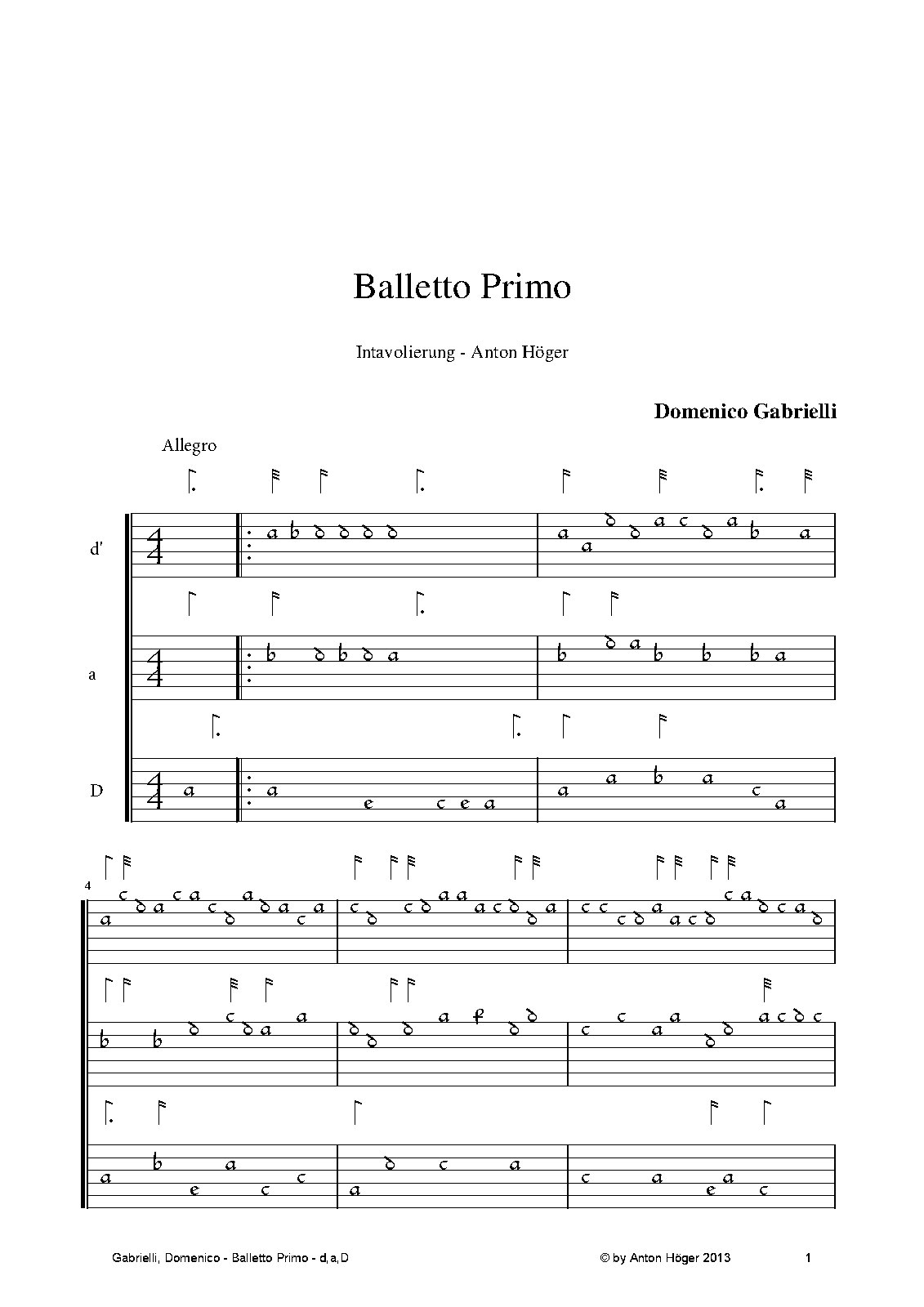 | Work Title | Balletti: Gighe, Correnti, Alemande e Sarabande, Op.1 |