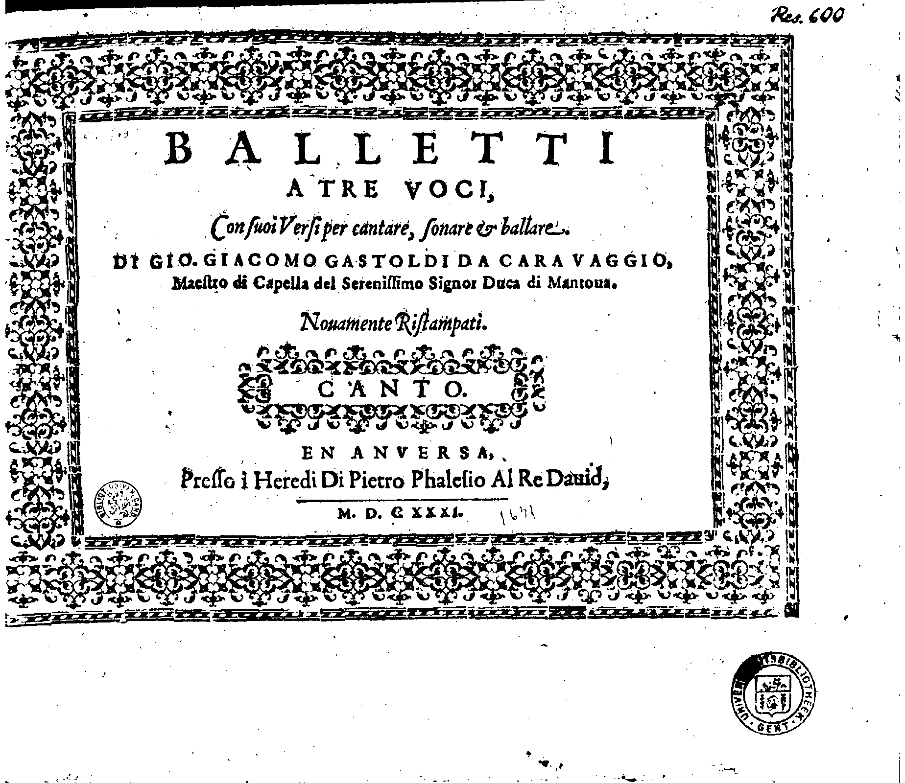 | Genre Categories | Balletti; Dances; Canzonettas; |