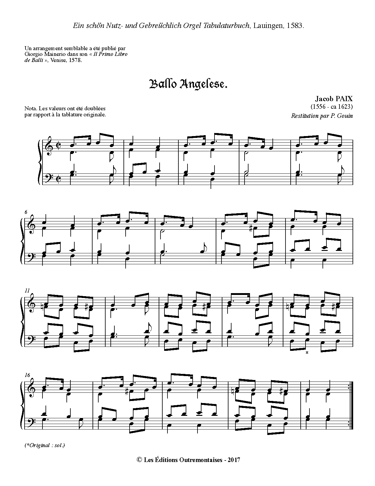 | Extra Locations | Ein Schön Nutz unnd Gebreüchlich Orgel Tabulaturbüch (Paix, Jakob). 1583. Lauingen. (no.87) |