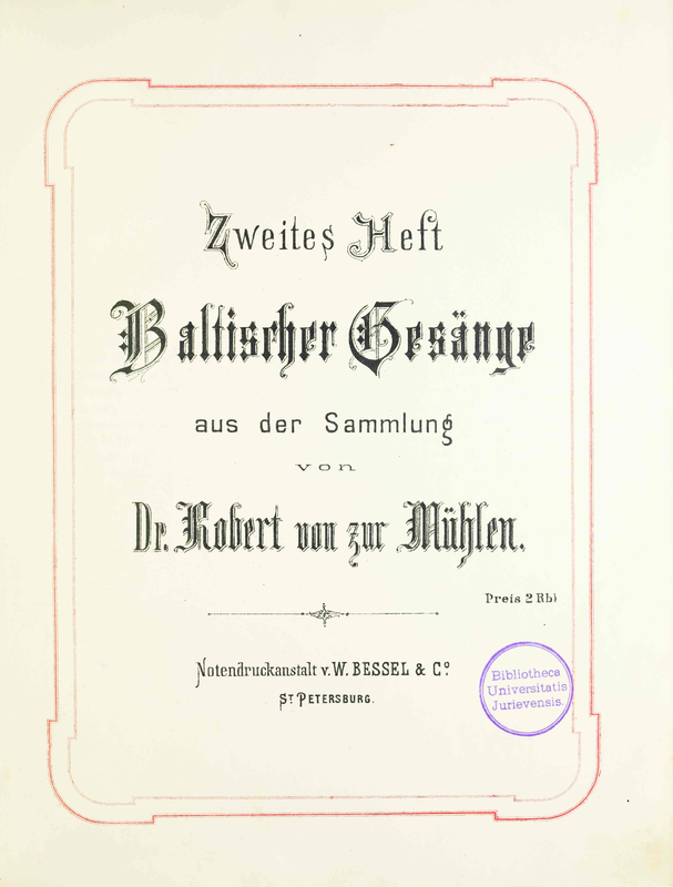 Baltische Gesänge aus der Zeit vom 17ten Jahrhundert ab bis zur Gegenwart gesammelt und herausgegeben von Robert von zur Mühlen
