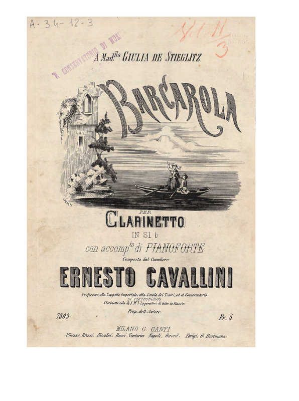 | Genre Categories | Barcarolles; For clarinet, piano; Scores featuring the clarinet; |
