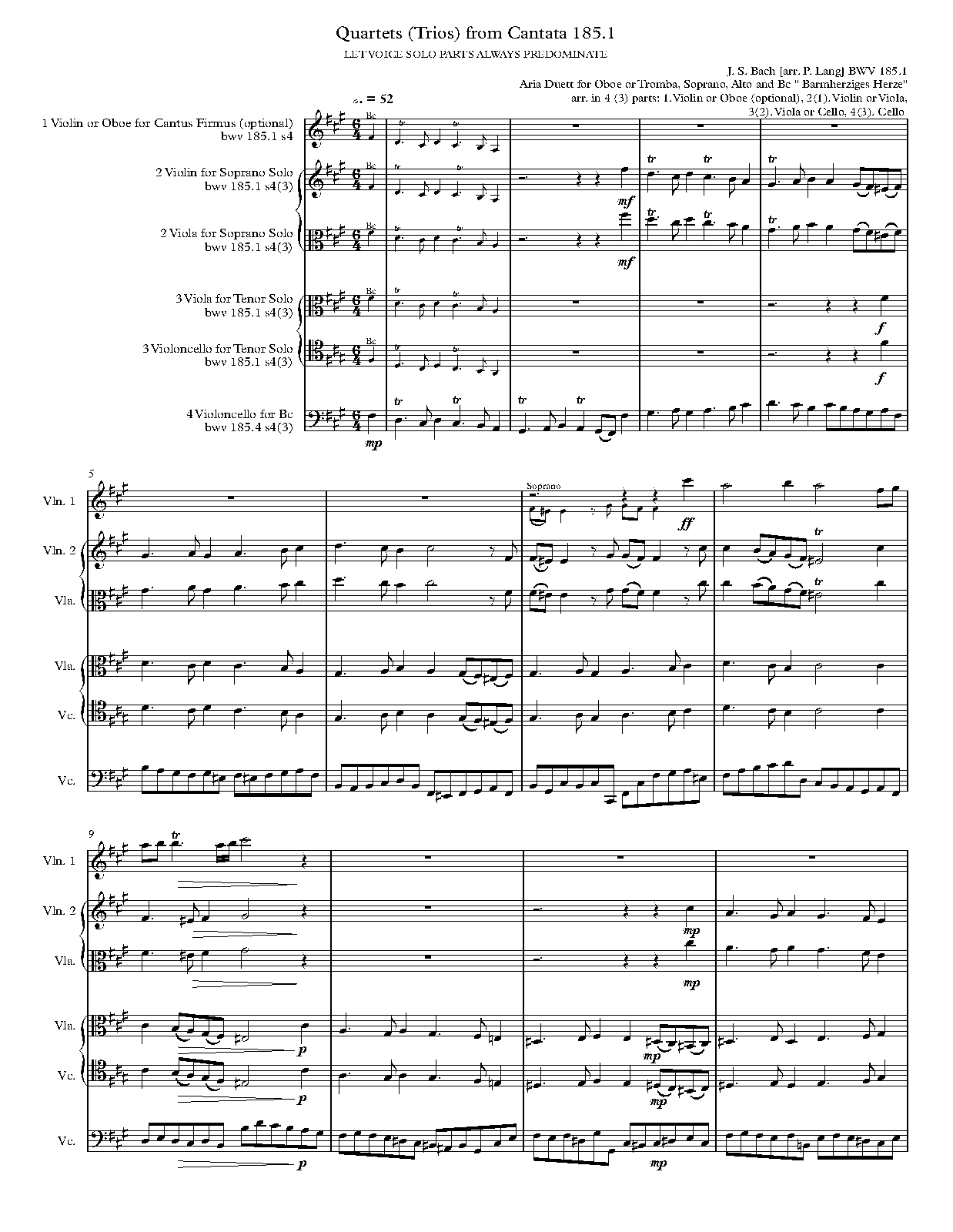 For Quartets: Oboe ad lib. and Strings (Lang / Bartoli)