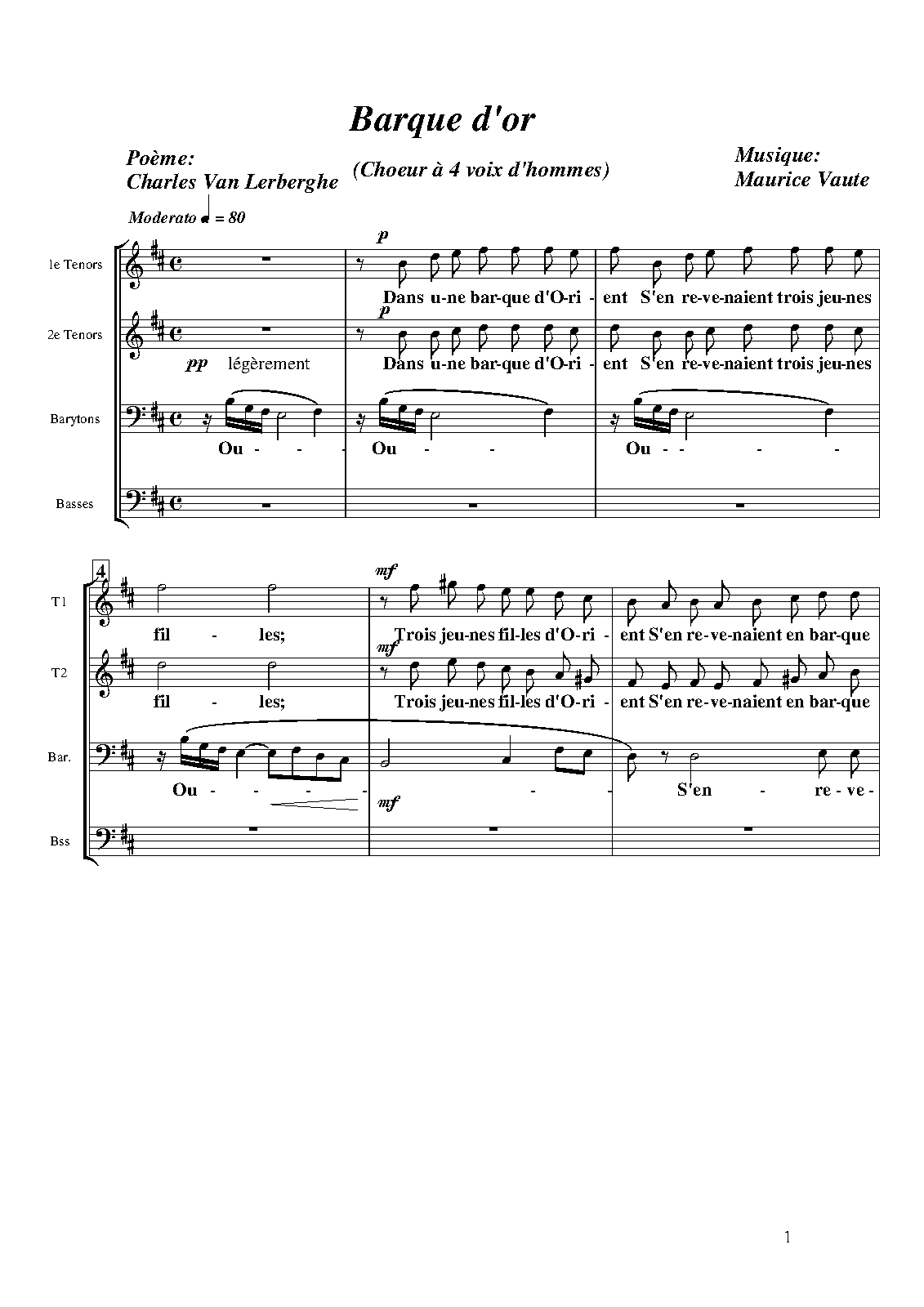 | Instrumentation | Choeur à quatre voix d'hommes- Male choir (TTBB) |