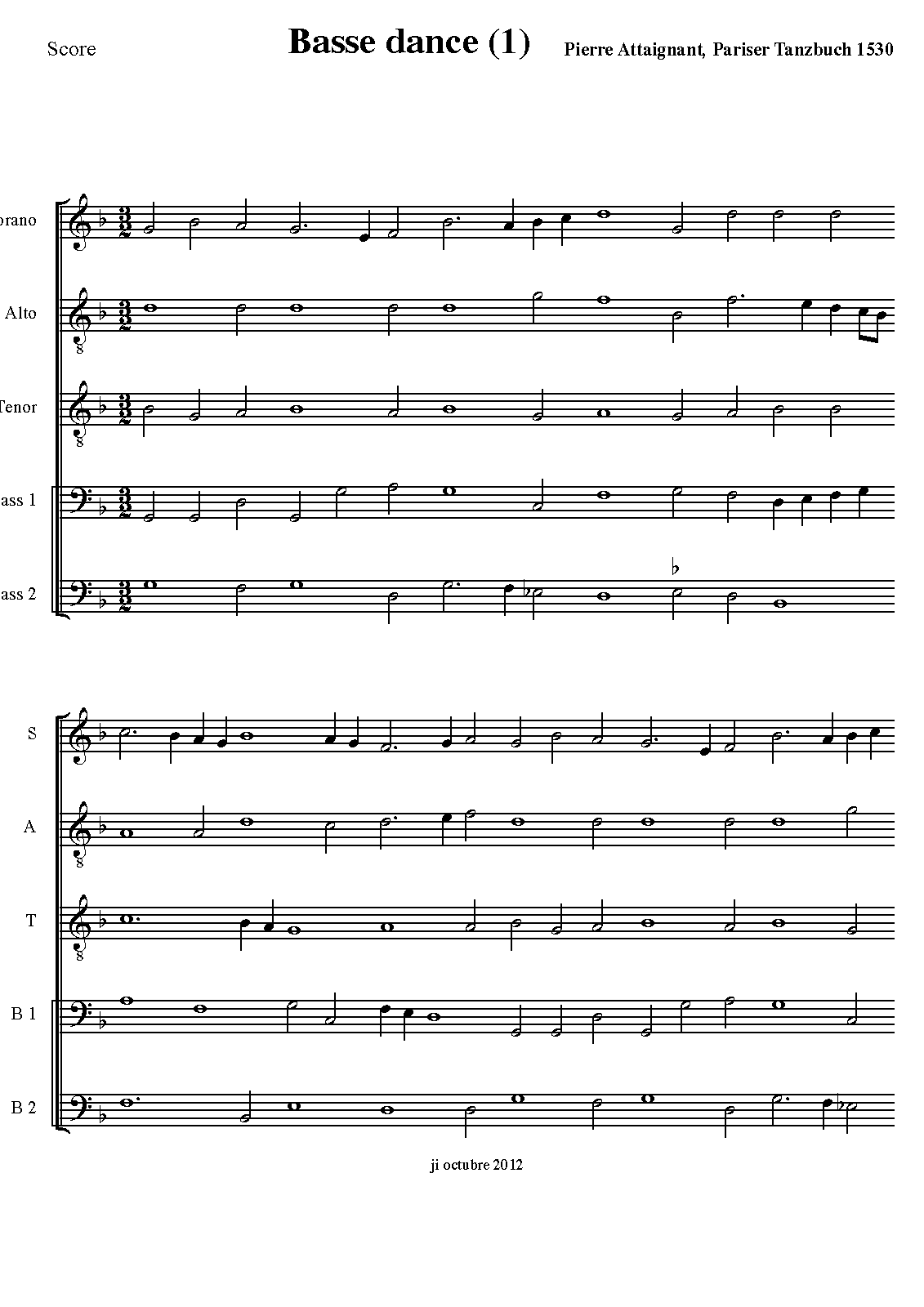 | Genre Categories | Basse danses; Dances; For treble, alto, tenor, 2 bass instruments; |