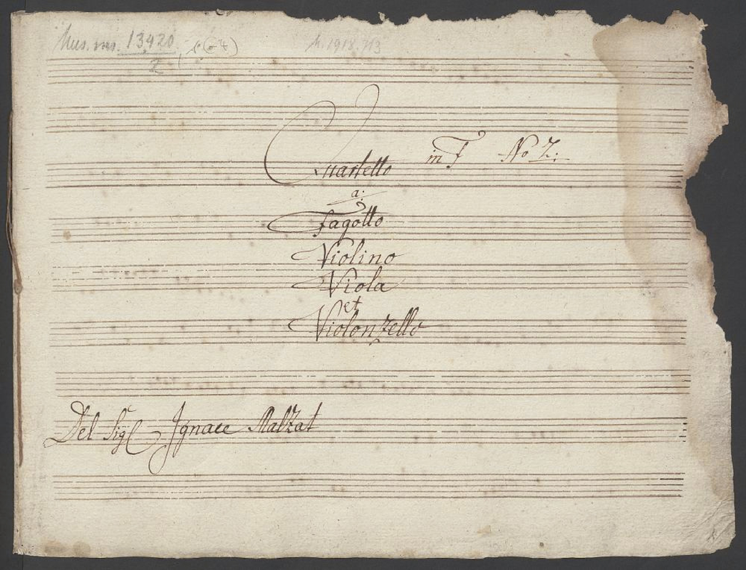 | Genre Categories | Quartets; For bassoon, violin, viola, cello; Scores featuring the bassoon; |