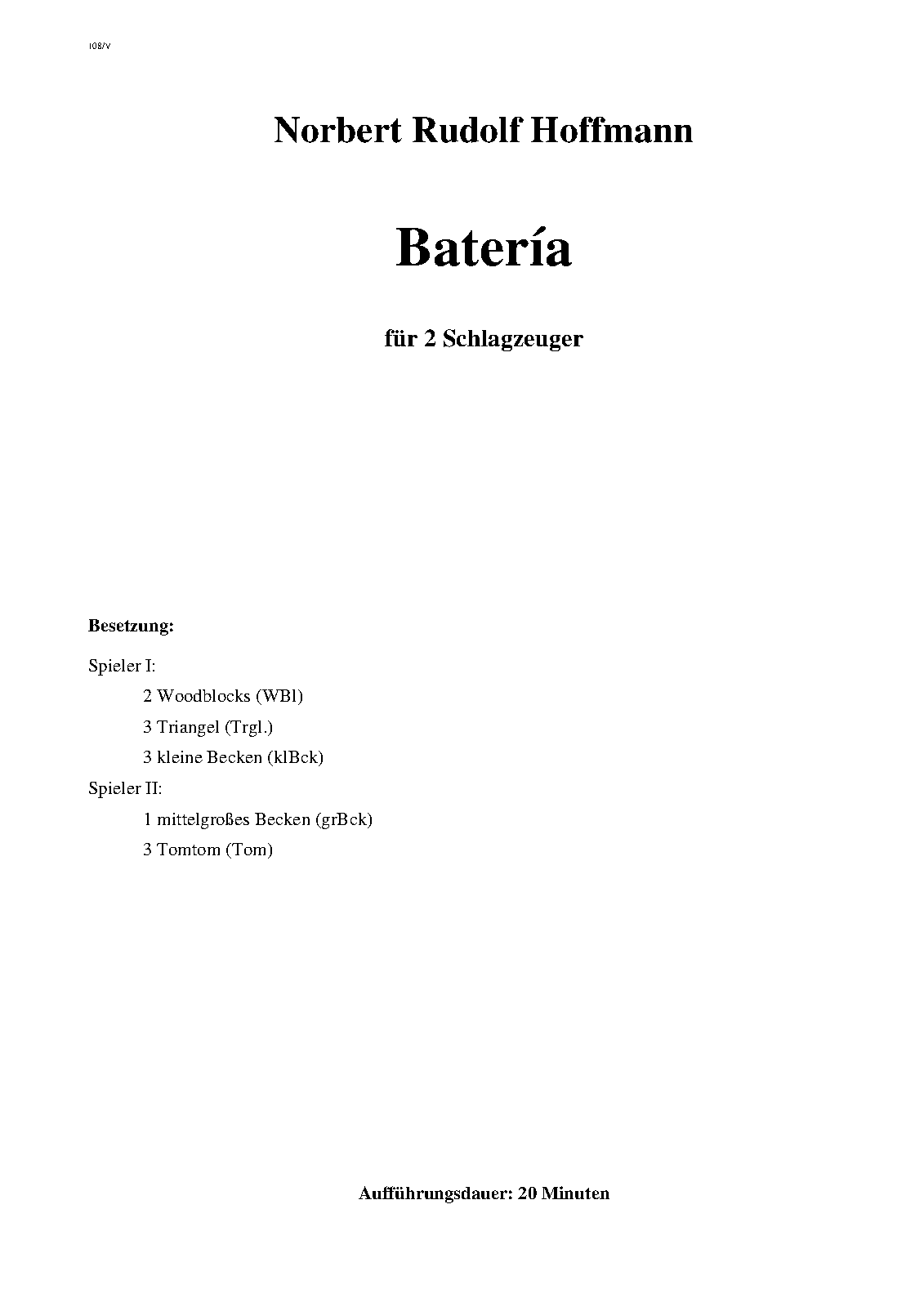 | Genre Categories | Duets; For 2 percussion; Scores featuring percussion soloists; For 2 players |