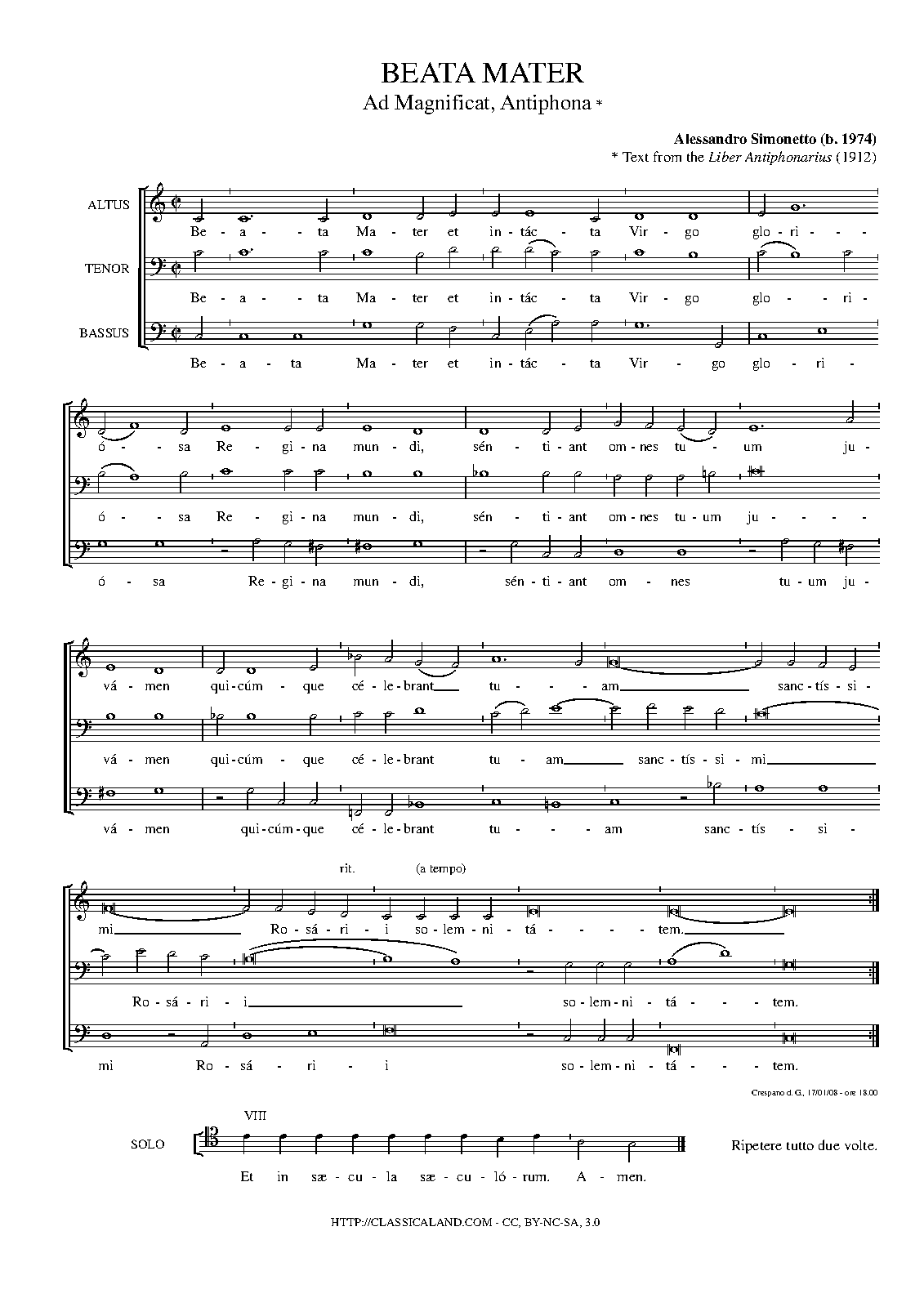 | Work Title | Beata Mater Ad Magnificat, Antiphona |