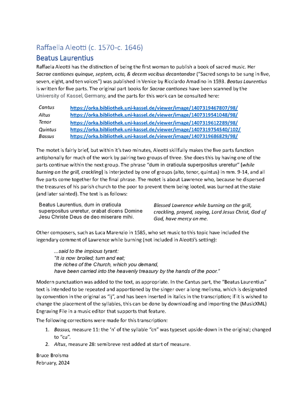 | Work Title | Beatus Laurentius |