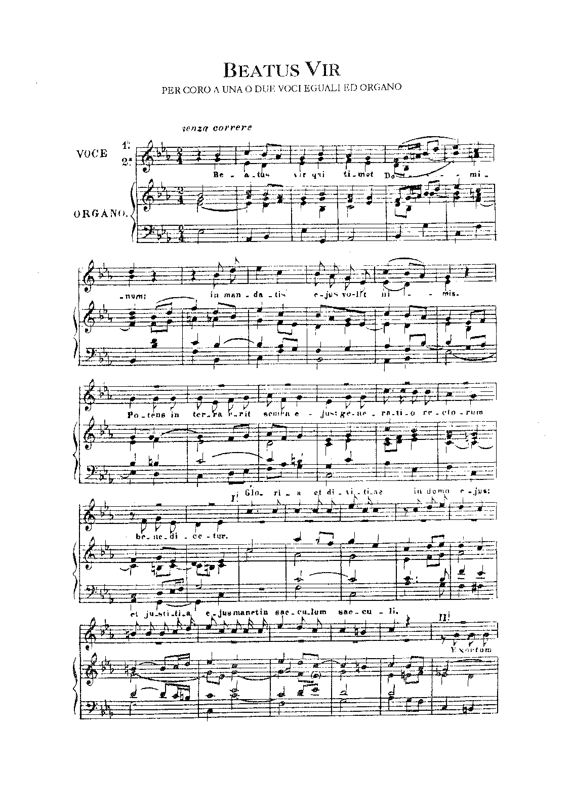 Setting for 2 equal voices (treble clef) and organ, E major