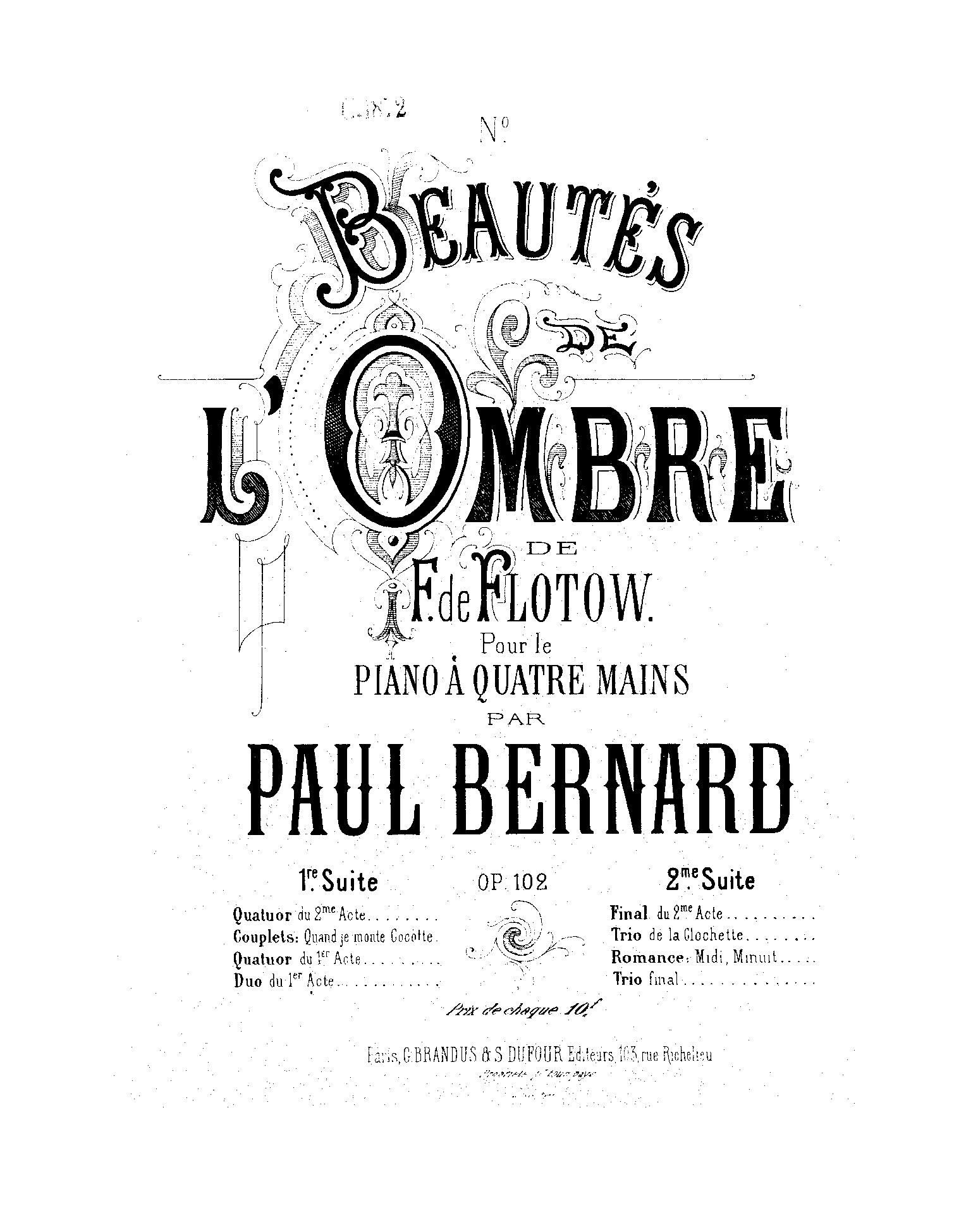 | Alternative. Title | Beautés de l'Ombre de F. de Flotow pour le piano à quatre mains |
