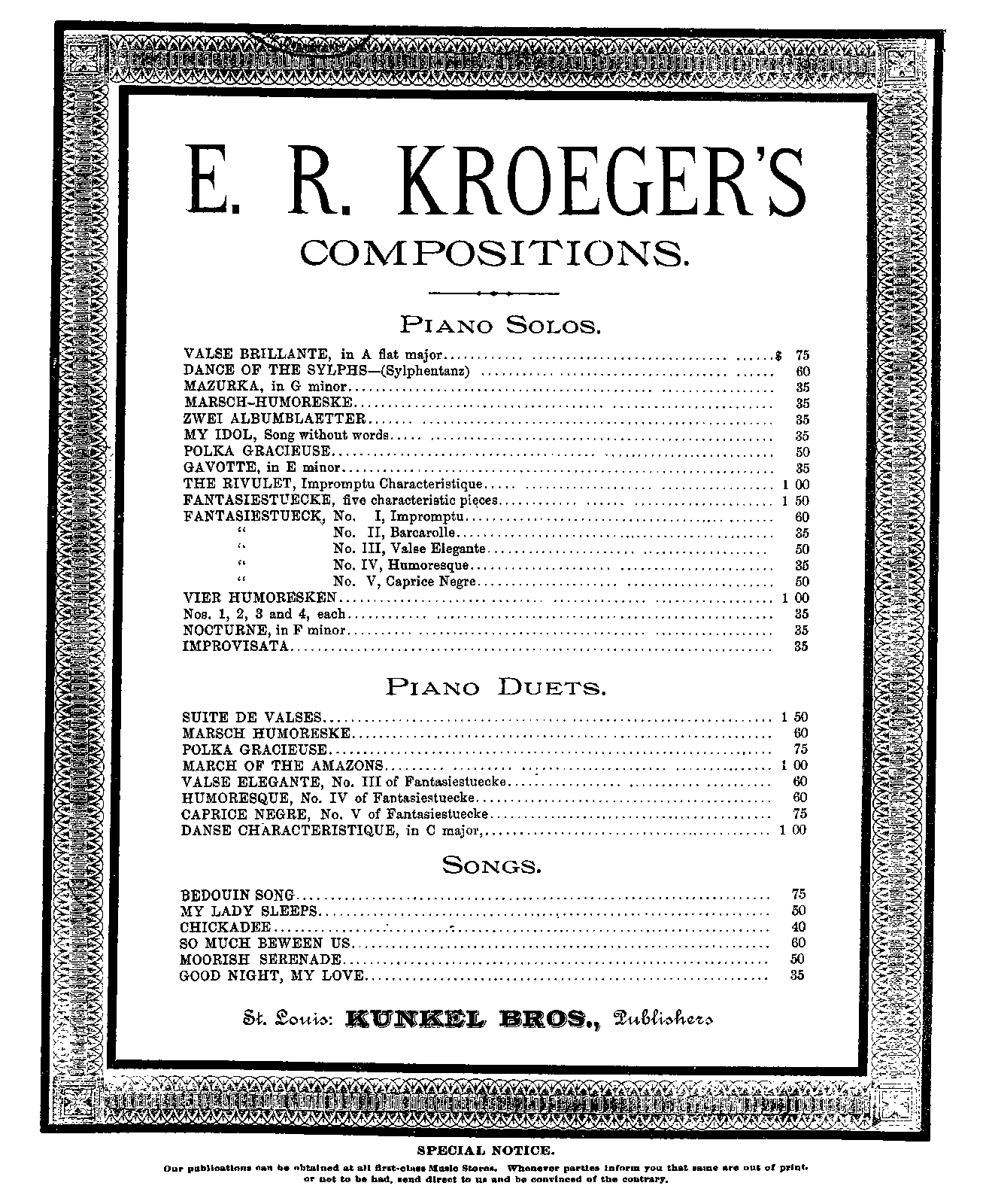 | First Publication. | 1885 – St. Louis: Kunkel Brothers |