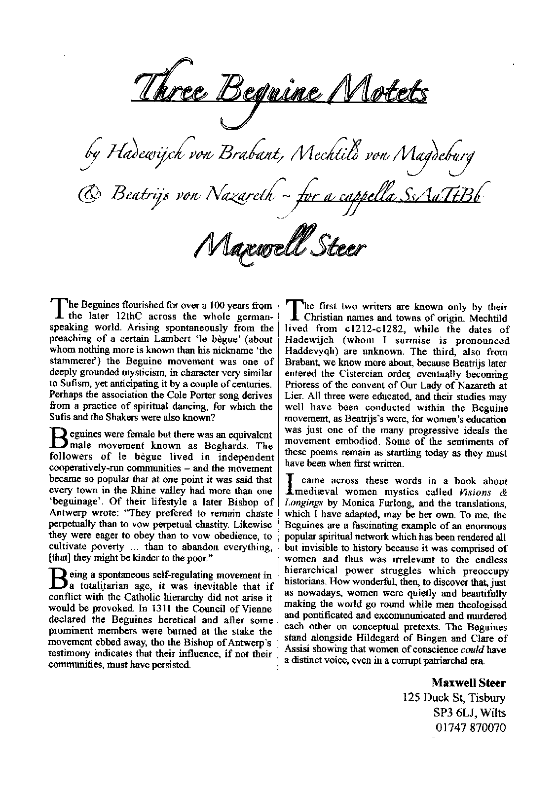 Three Beguine Motets