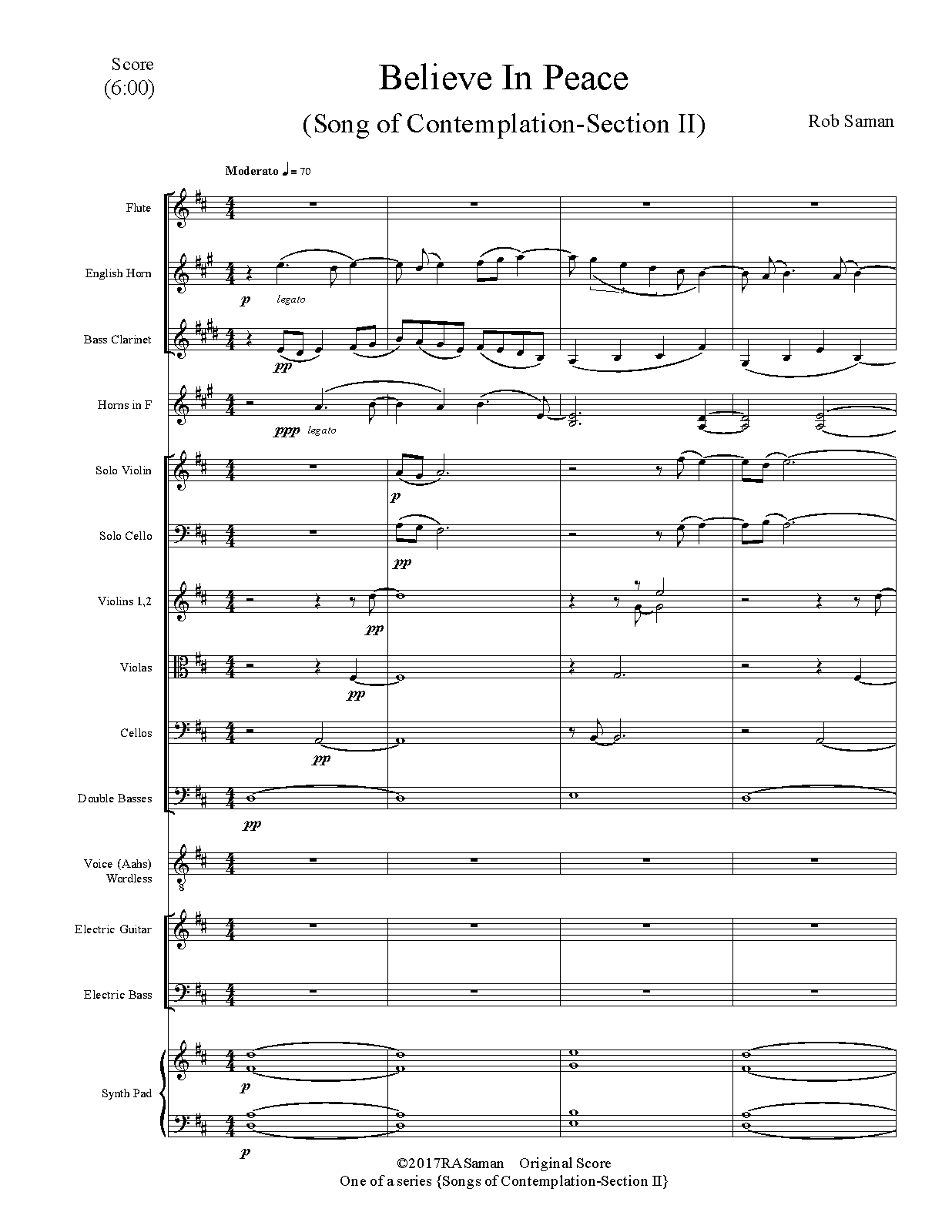 | Instrumentation | Voices: mixed chorus (SATB) Orchestra: flute, English horn, bass clarinet, horns, synthesizer, electric guitar, bass guitar, strings (violin solo, cello solo) |