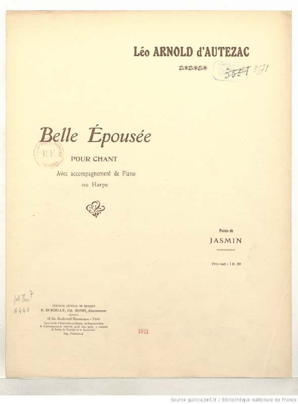 | Alternative. Title | Belle épousée pour chant avec accompagnement de piano ou harpe |