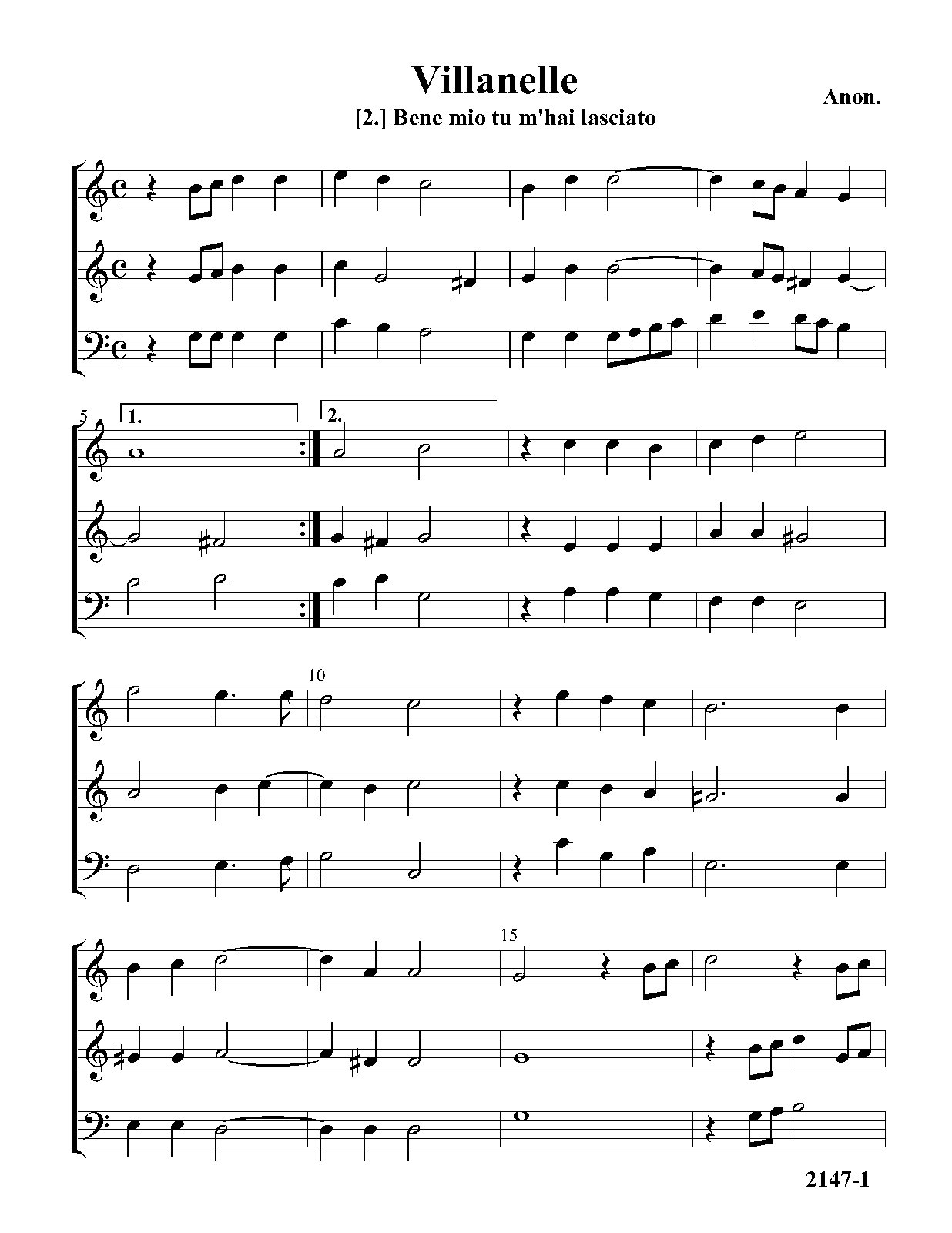 | Genre Categories | Villanelle; For 3 voices; For unaccompanied voices; |