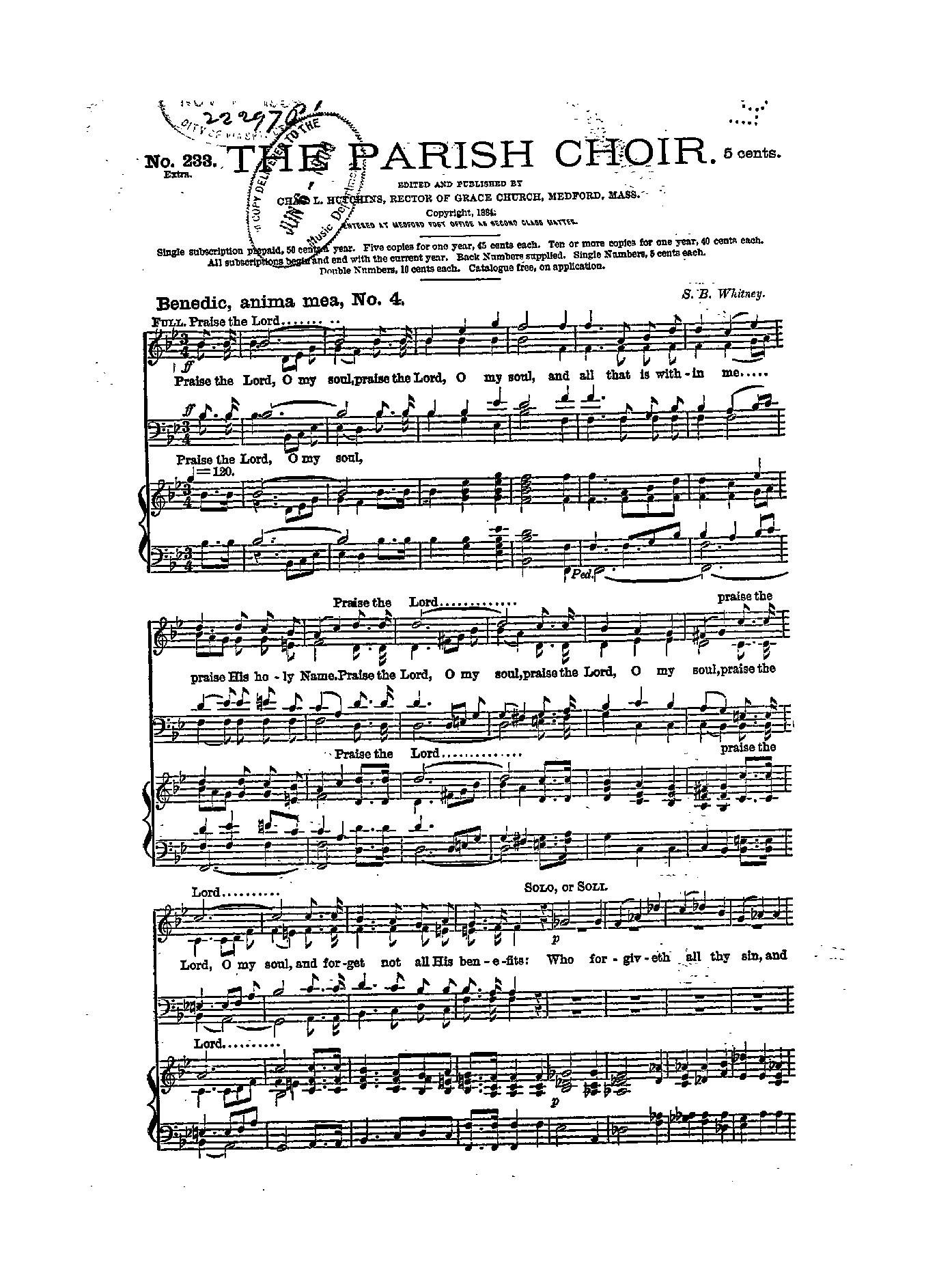 | Instrumentation | soprano solo, choir, piano (ad lib??) |