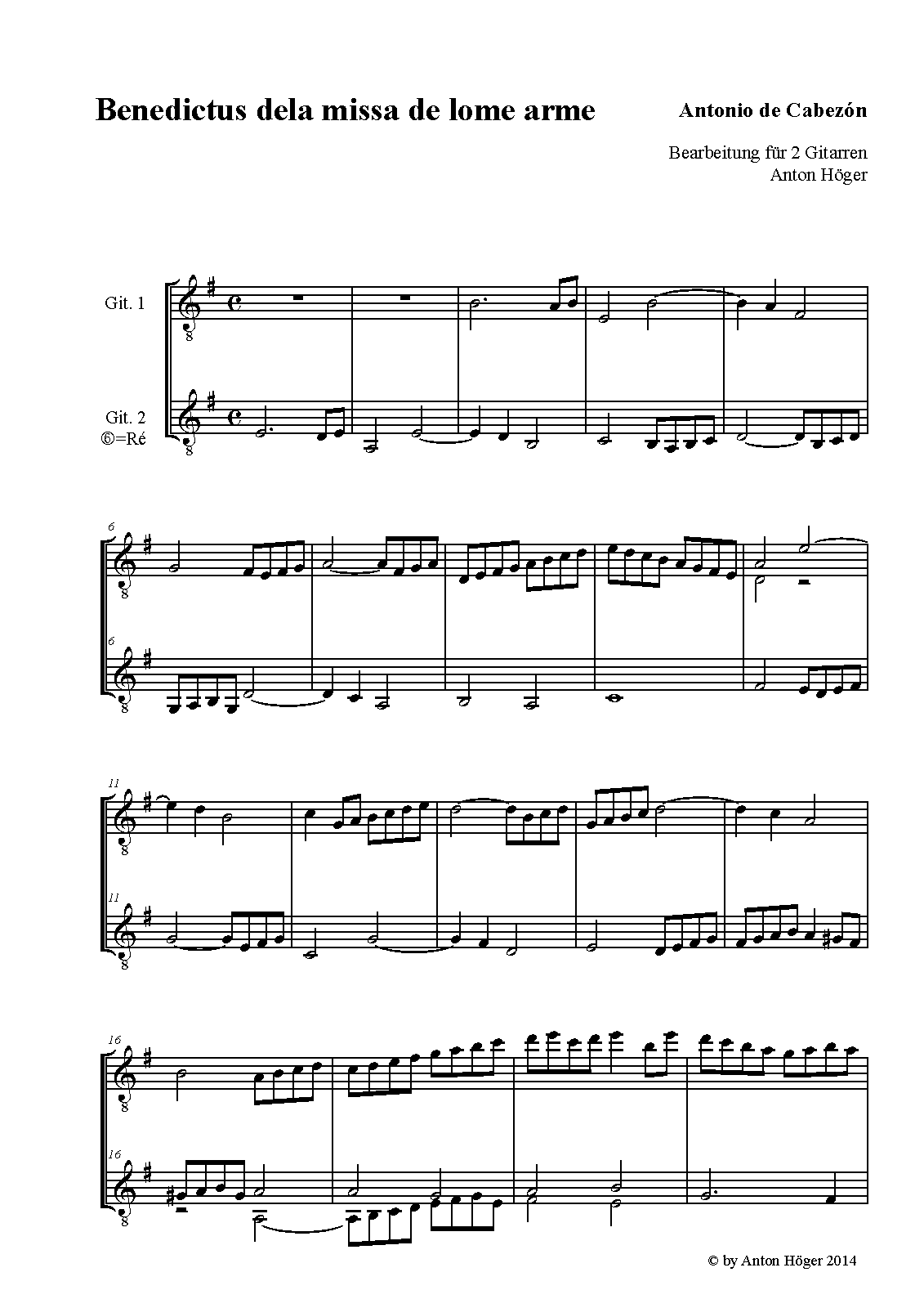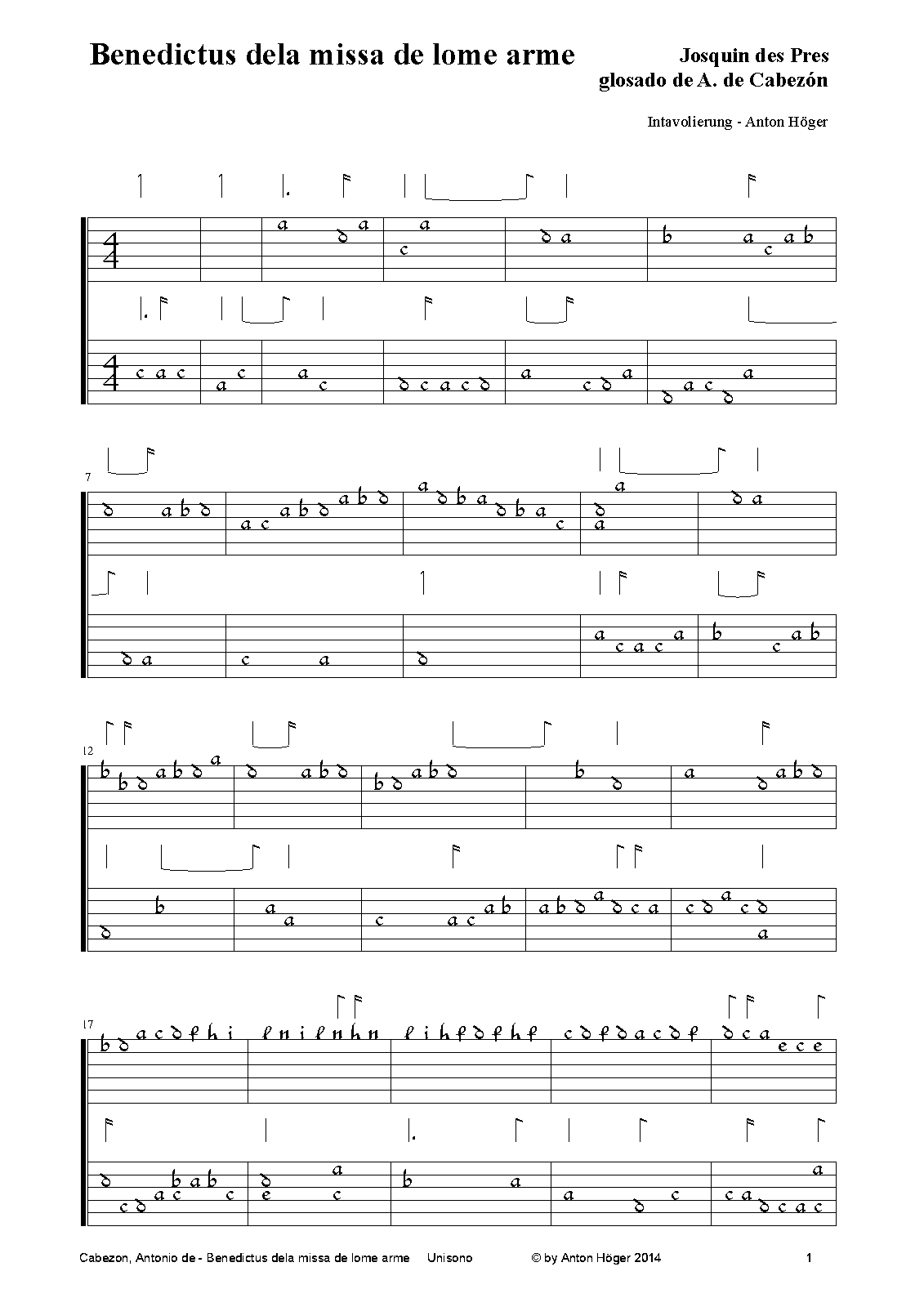 | Work Title | Benedictus dela missa de lome arme glosado de A. de Cabezón |
