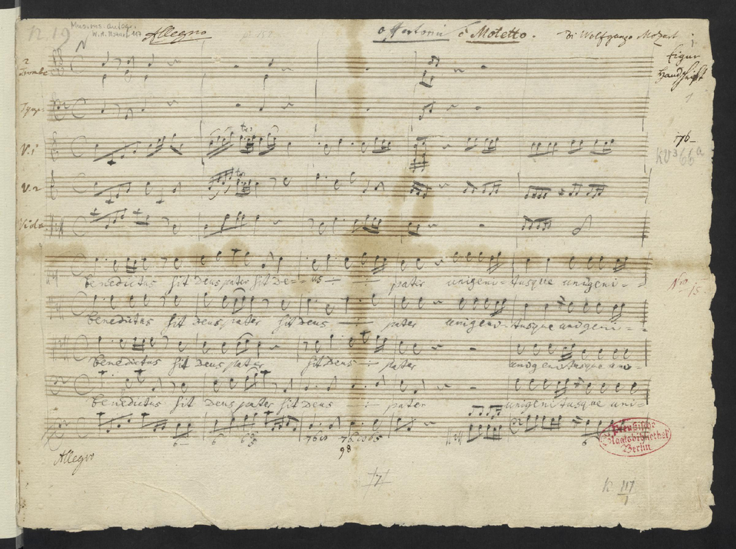 Misc. Notes Staatsbibliothek zu Berlin (D-B): Mus.ms.autogr. Mozart, W. A. 117
