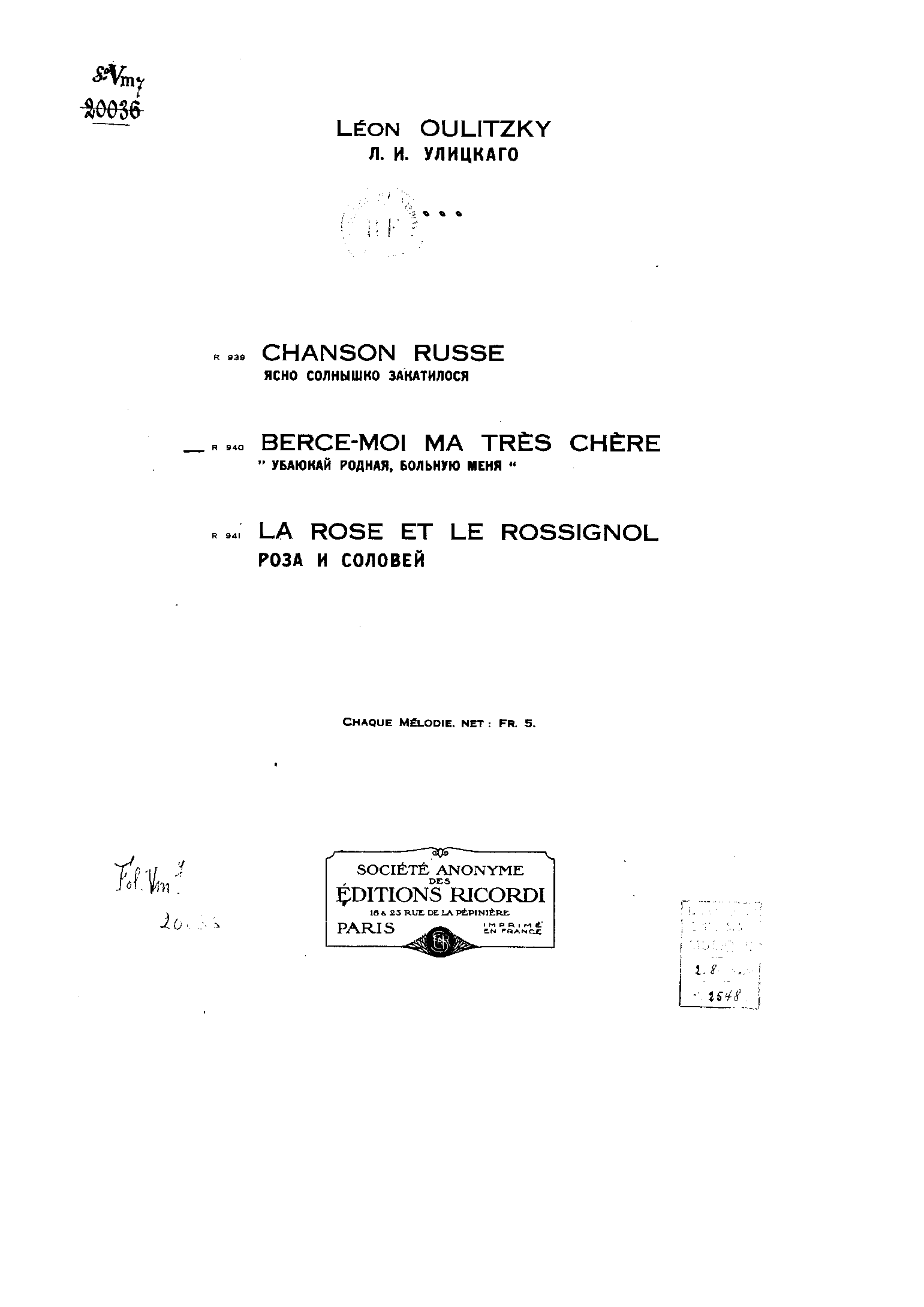 | Composer | Oulitzky, Léon |