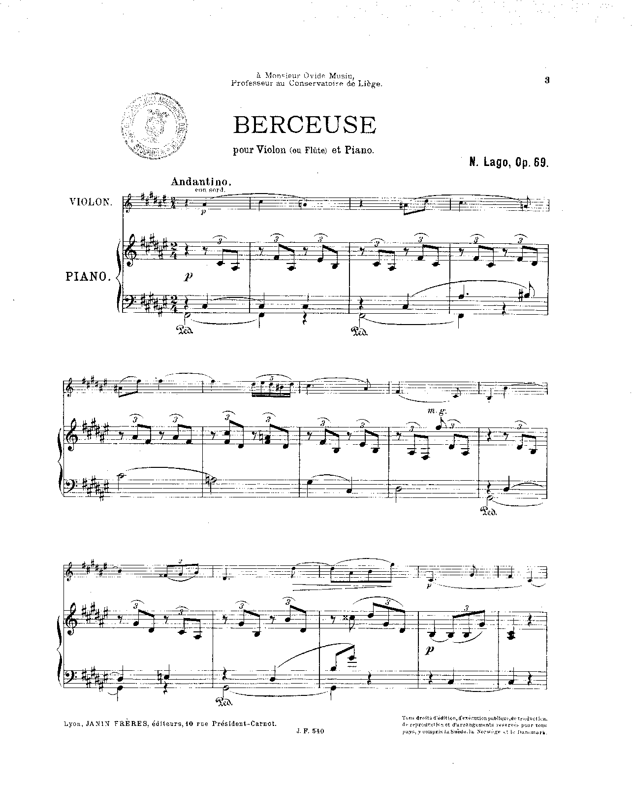 | Genre Categories | Berceuses; For violin, piano; Scores featuring the violin; |