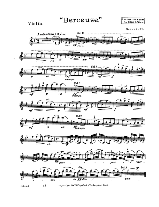 | Genre Categories | Berceuses; For violin, piano; Scores featuring the violin; |
