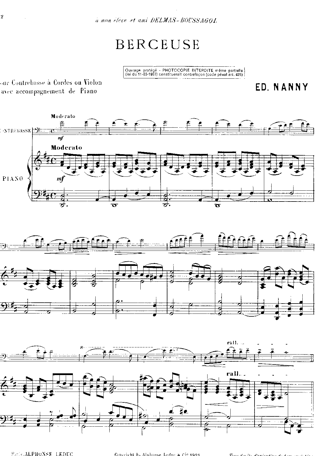 | Genre Categories | Berceuses; For double bass, piano; Scores featuring the double bass; |