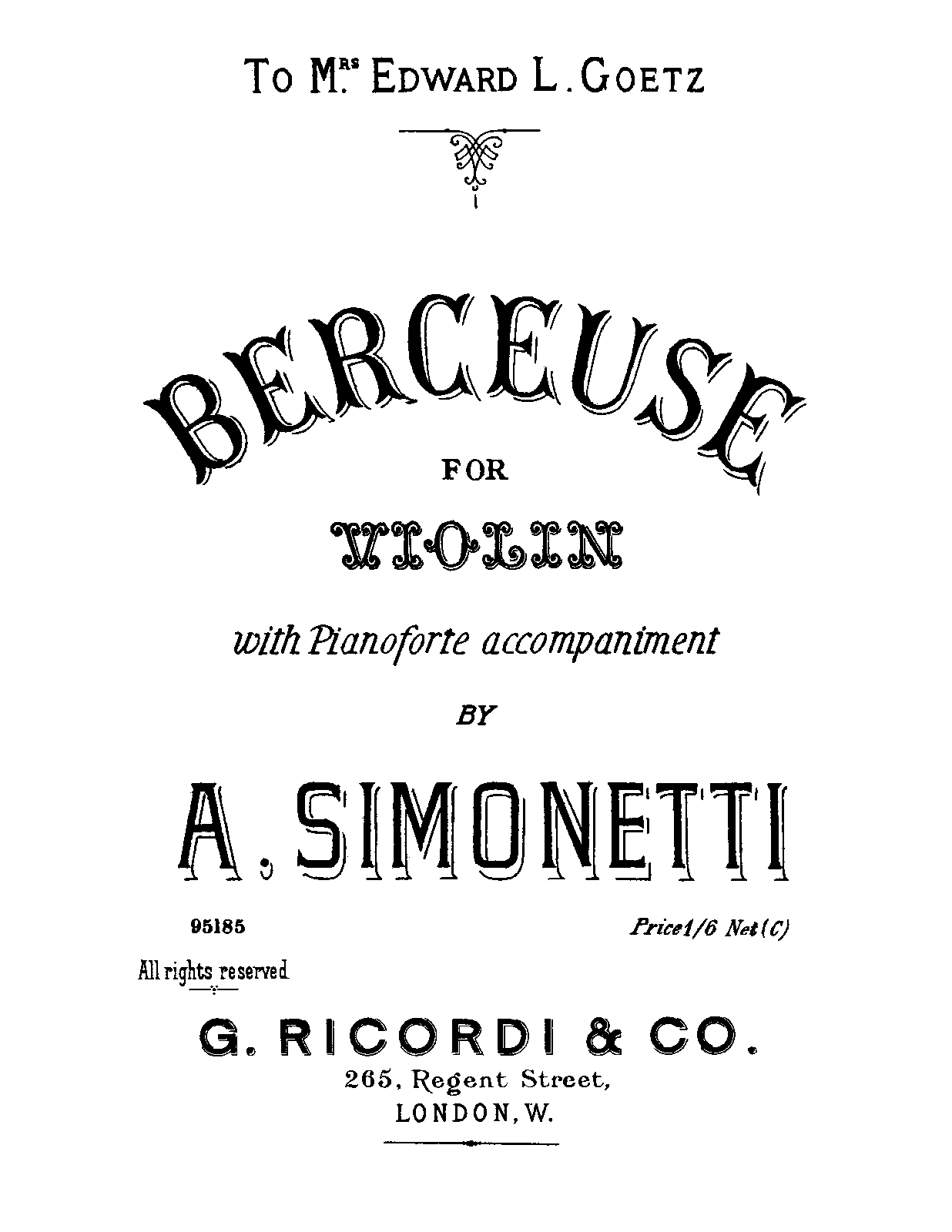 | Genre Categories | Berceuses; For violin, piano; Scores featuring the violin; |