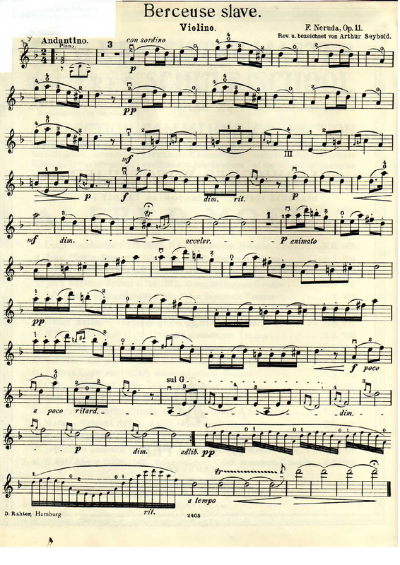 A "Berceuse slave" for 3 cellos by Neruda, dated May 14 1881 - same work (... presumably??) - can be found in score and parts in manuscript in the collection of the Danish Royal Library.