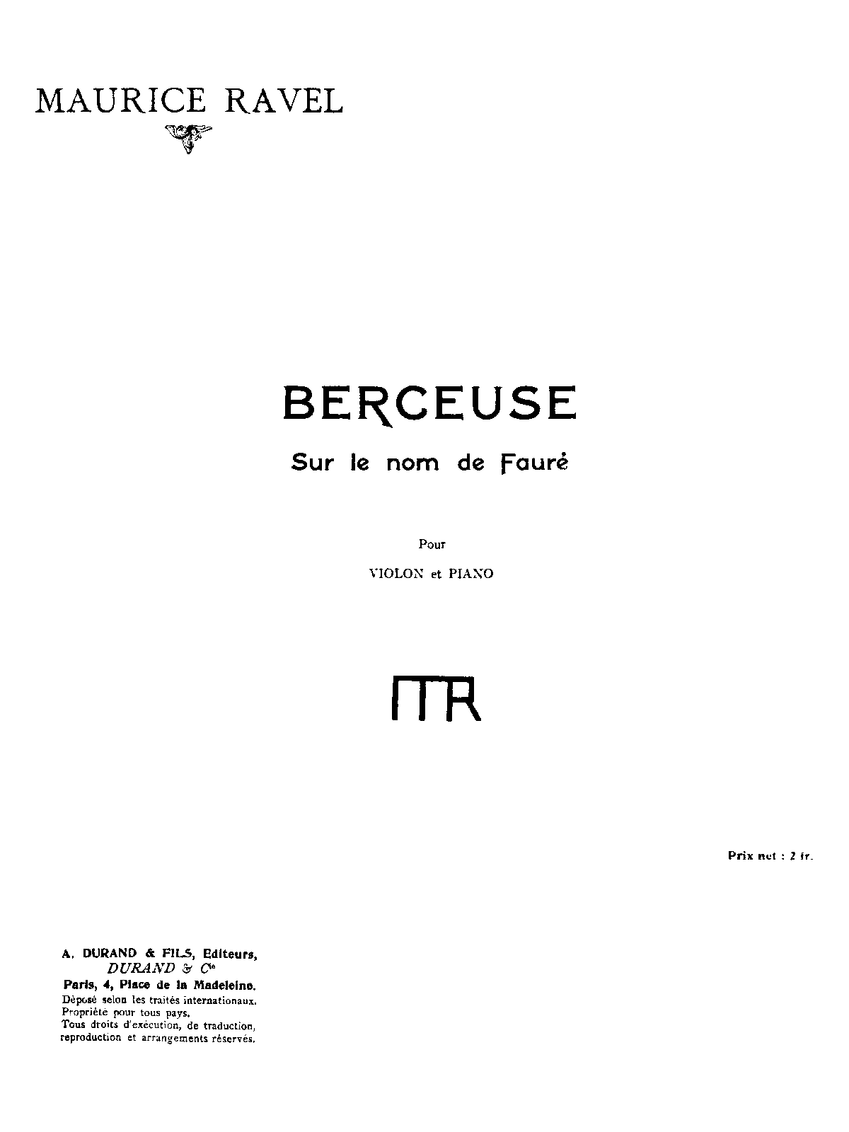 | Genre Categories | Berceuses; For violin, piano; Scores featuring the violin; |
