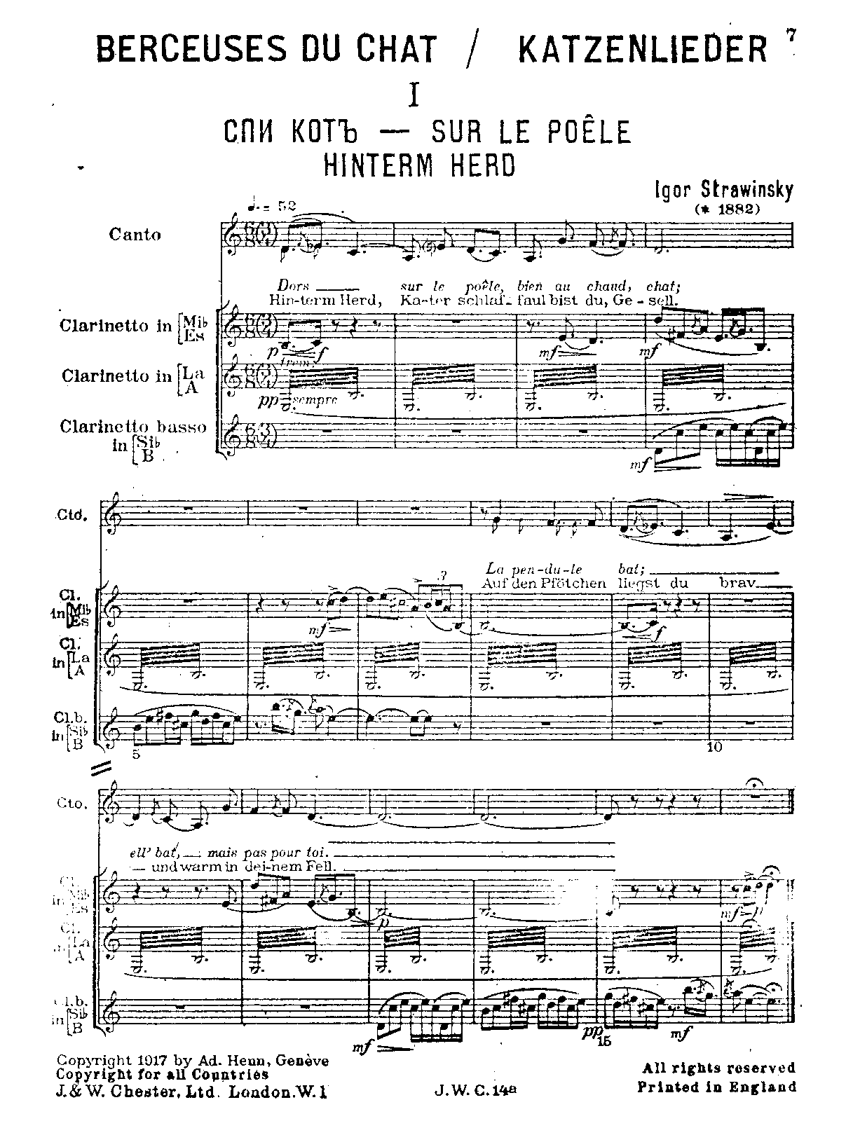 1917 – Geneva: A.D. Henn, Plate A. 68 H (vocal score) and Plate A. 69 H (full score)