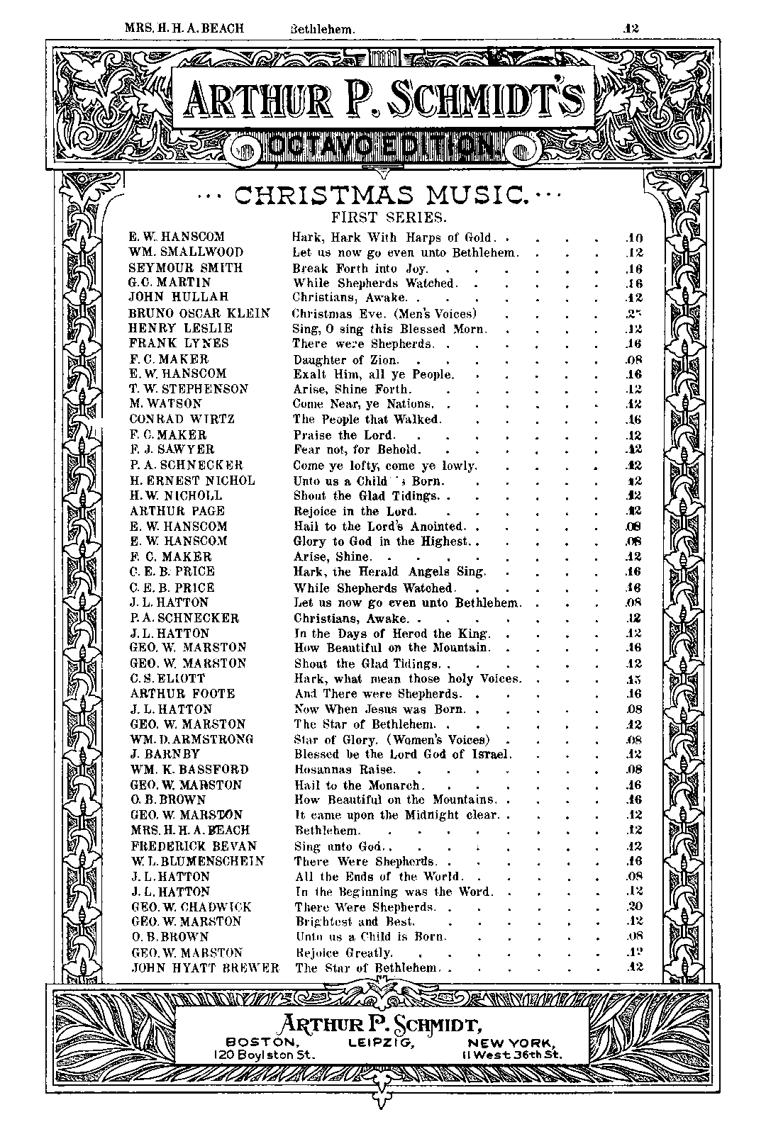 | First Publication | 1893 – Boston: Arthur P. Schmidt |