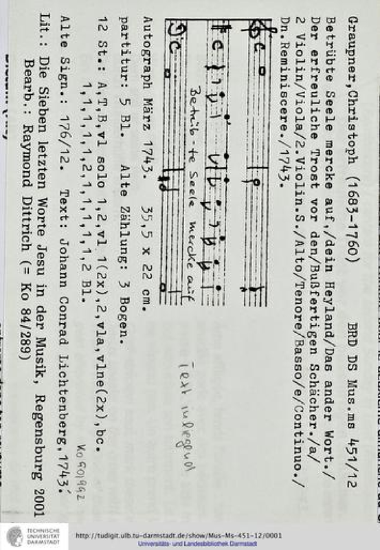 Betrübte Seele merke auf, GWV 1121/43 (Graupner, Christoph)