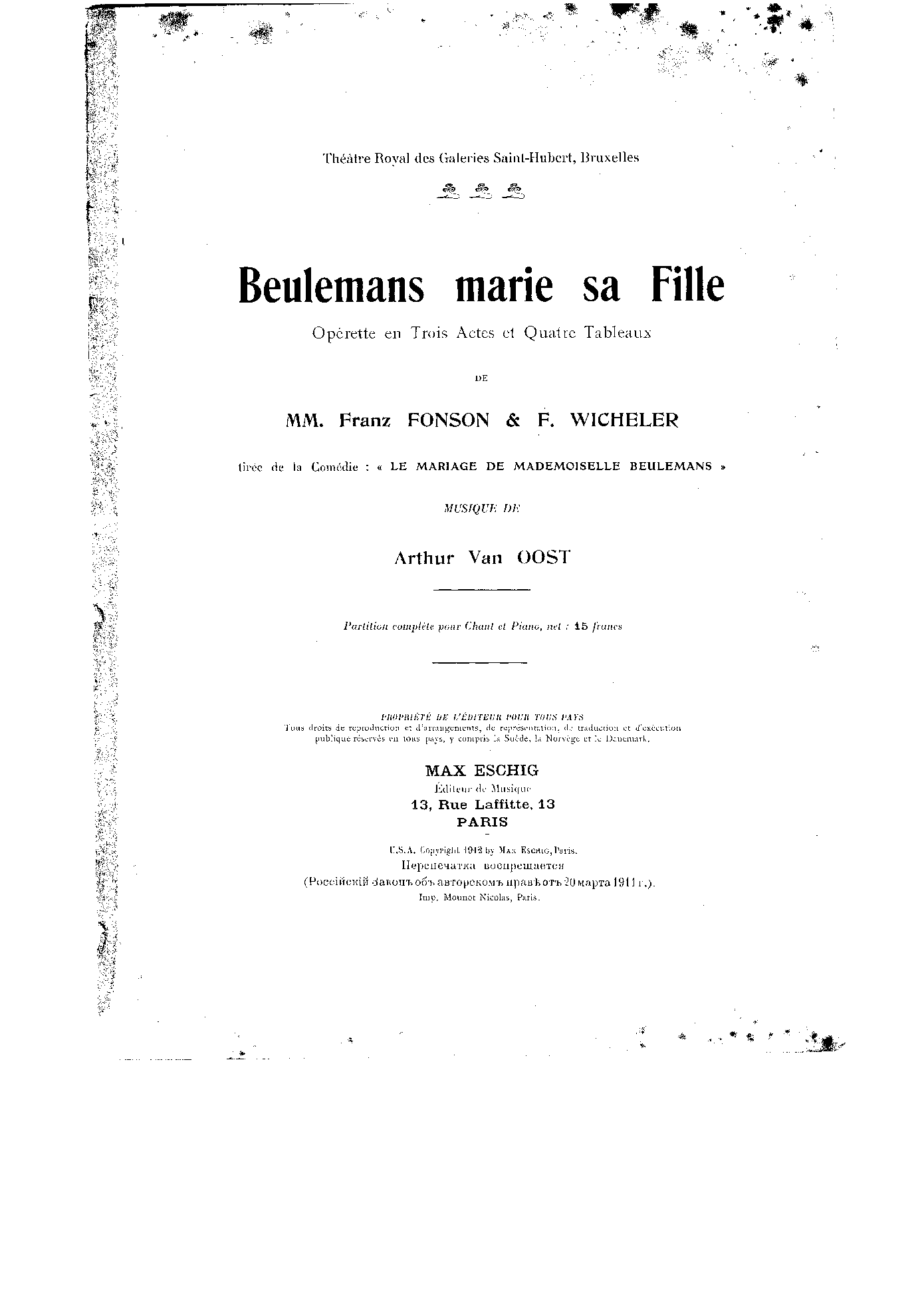 | Librettist | Frantz Fonson (1870-1924) Fernand Wicheler (1874-1935) |
