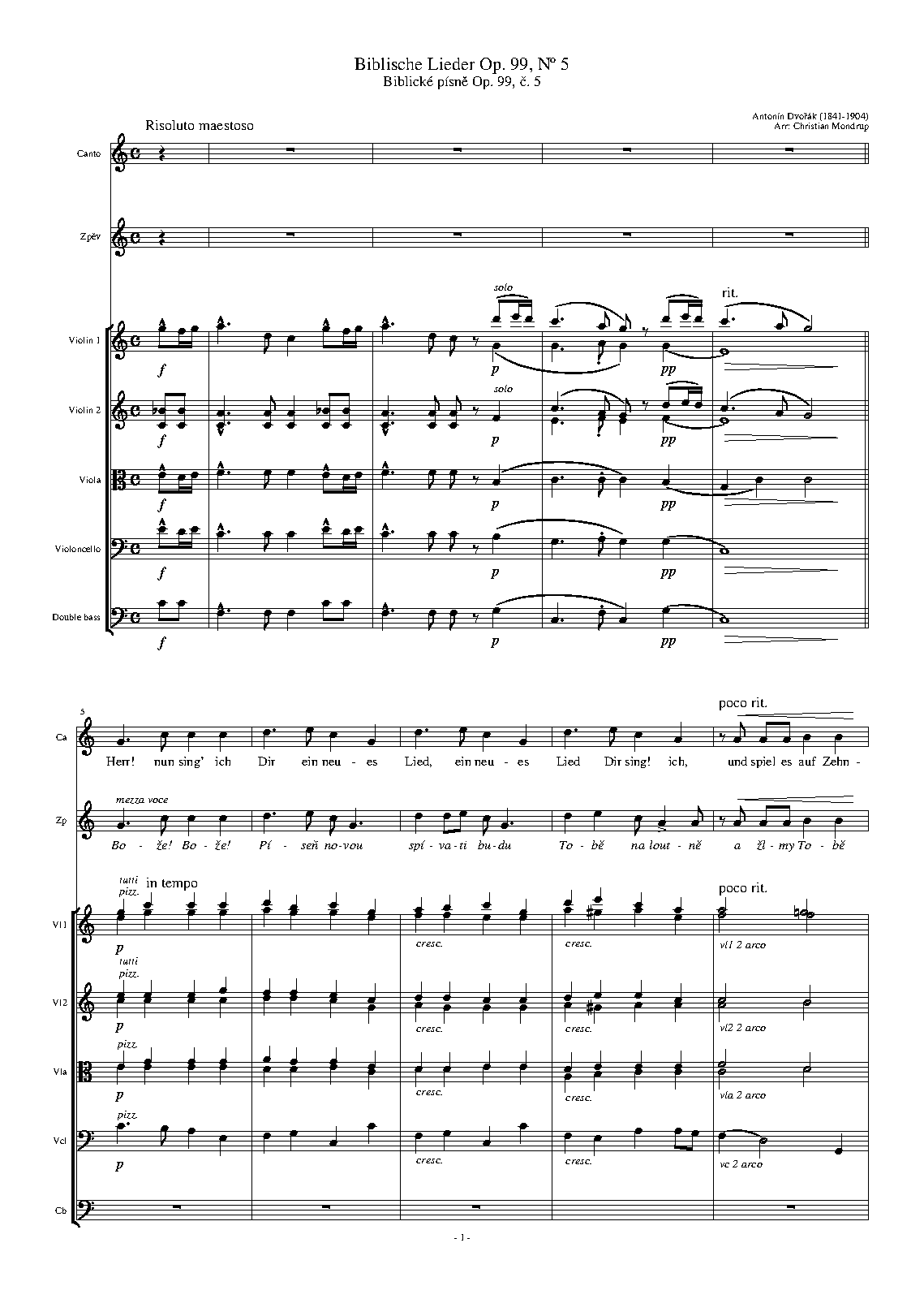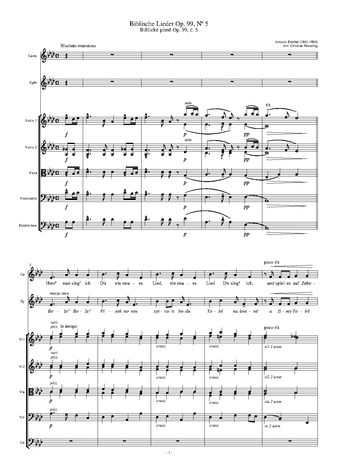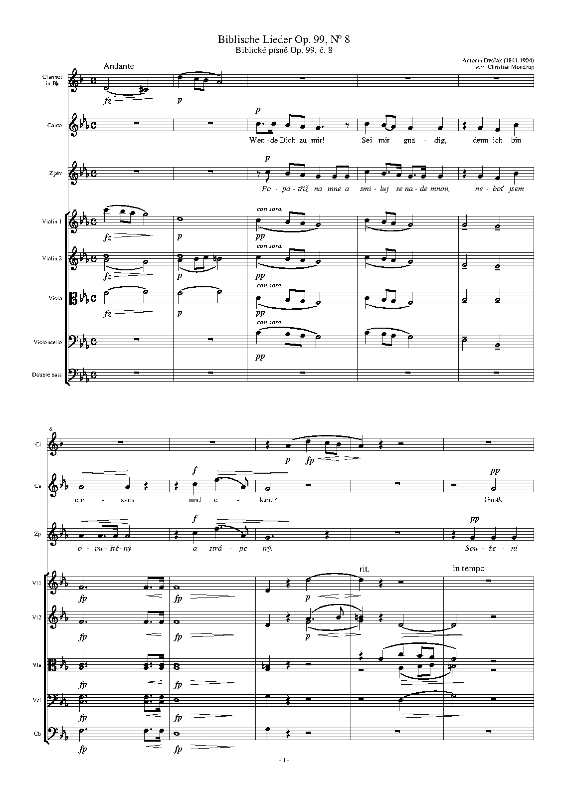 - Slyš, ó Bože, slyš modlitbu mou. Andante (B-flat major, 62 bars)