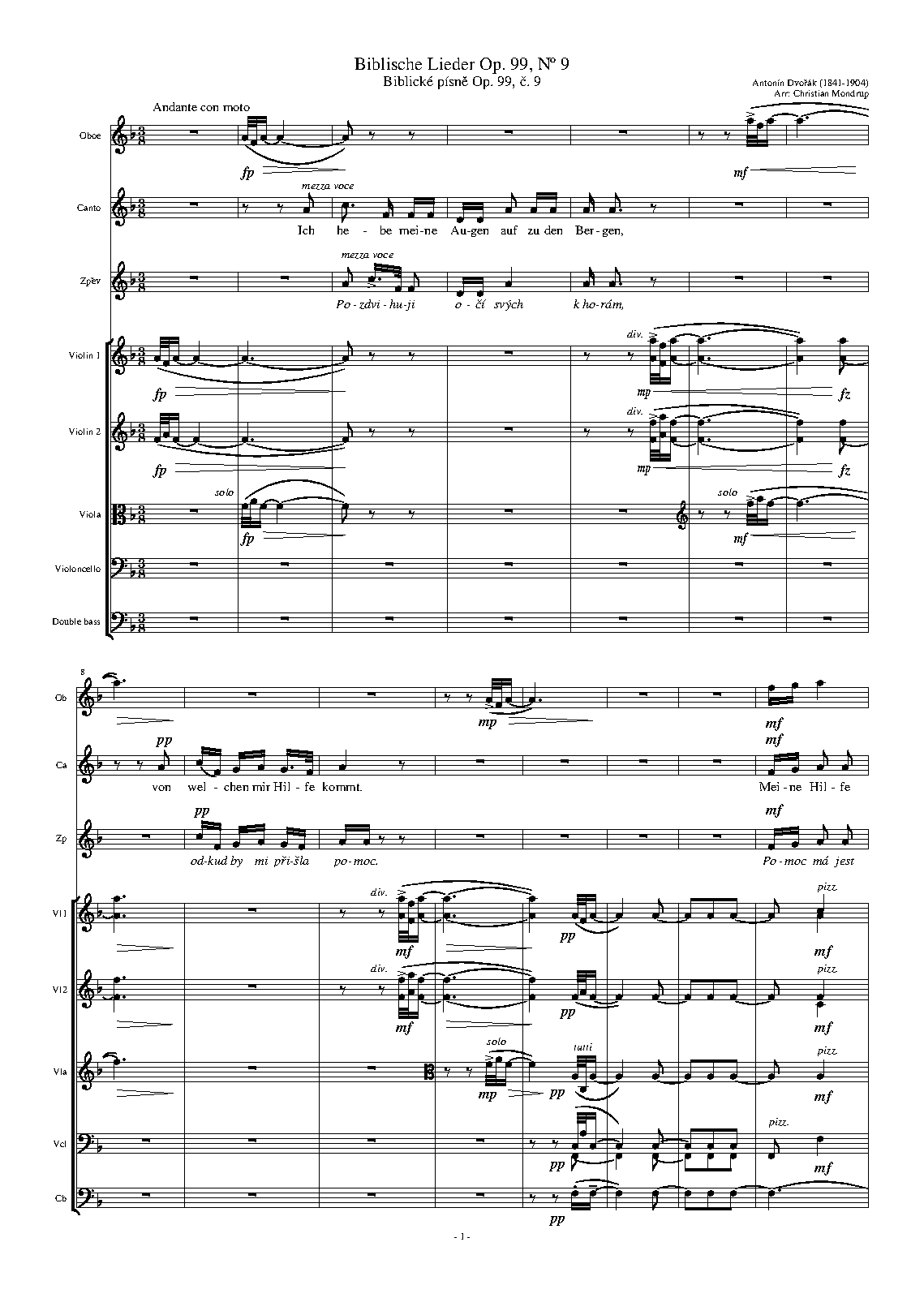 - Pozdvihuji očí svých k horám. Andante con moto (D minor, 45 bars)