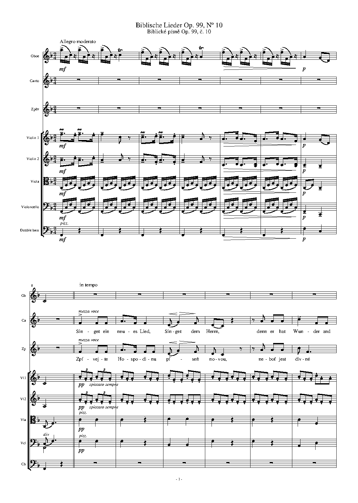 - Zpívejte Hospodinu píseň novou. Allegro moderato (F major, 72 bars)